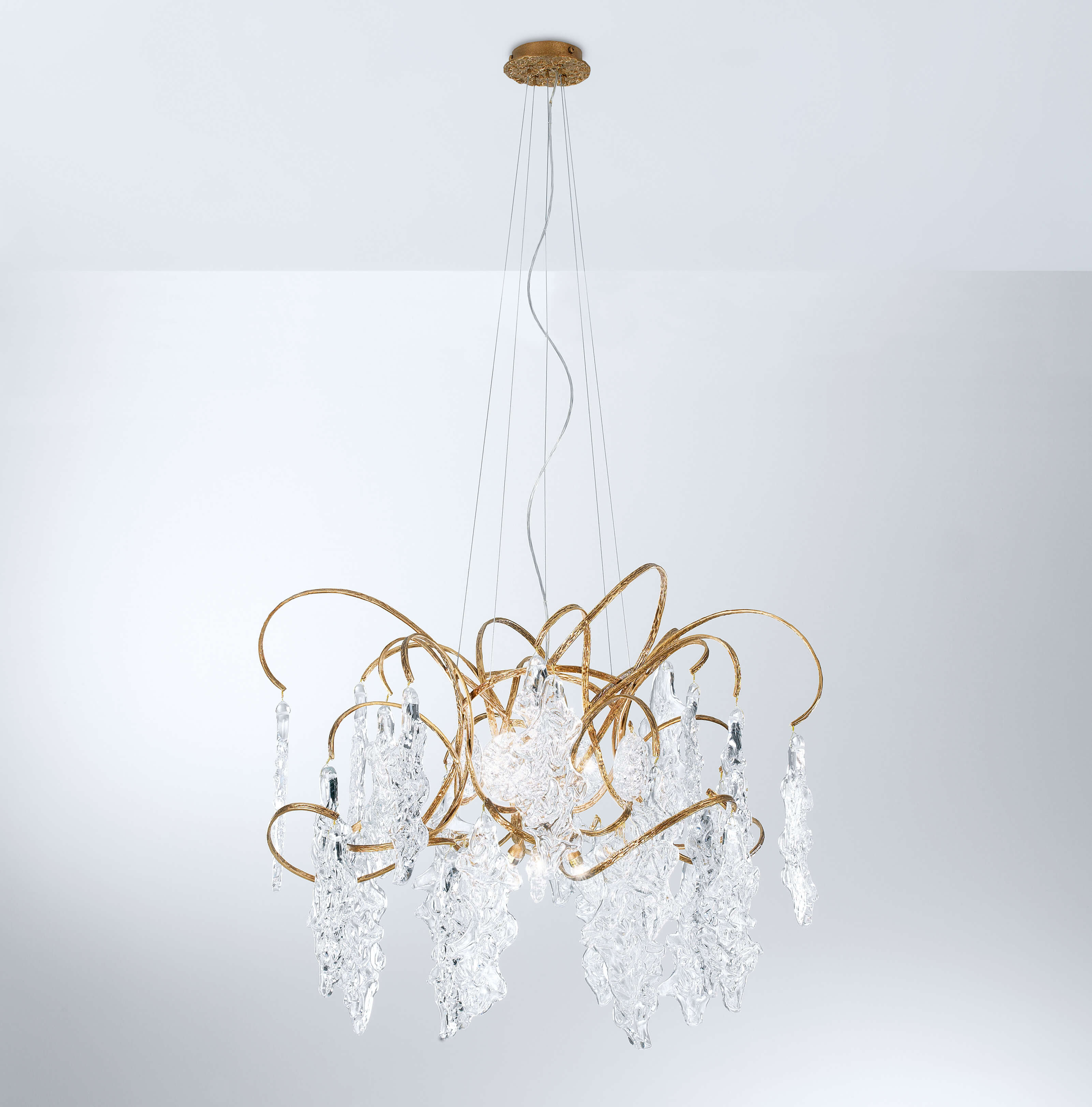 Delicate and with overflowing motion, this collection is inspired by musical notes and its conceptual graphic visualization. The inspiring twist and turn of the structure bronze lines represent melodies, music and symphonies, complete with the trembling pattern of the glass which represents the vibration of sound by itself.