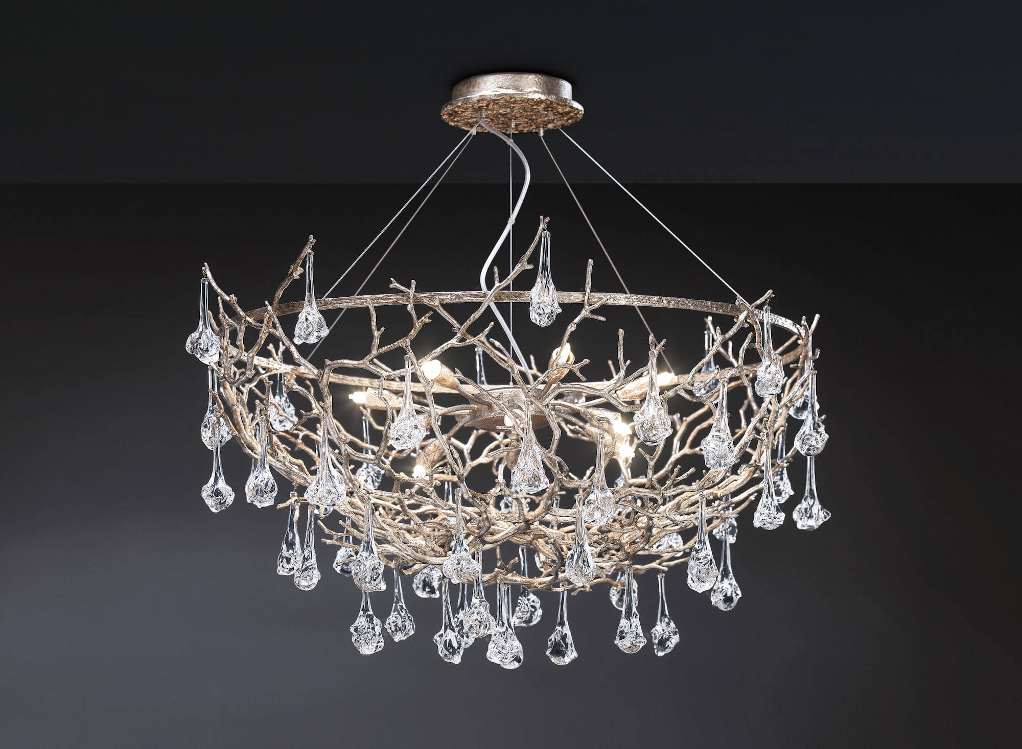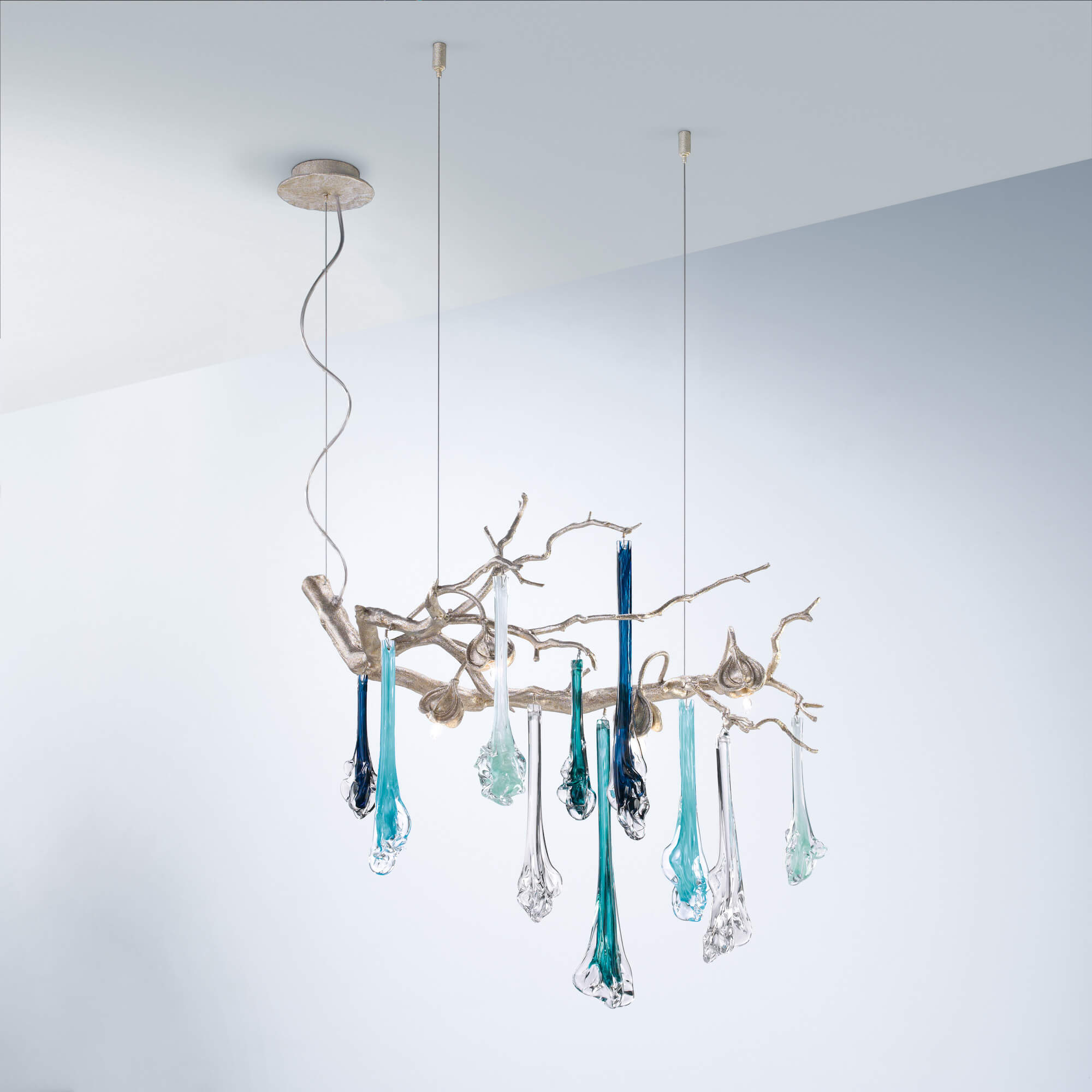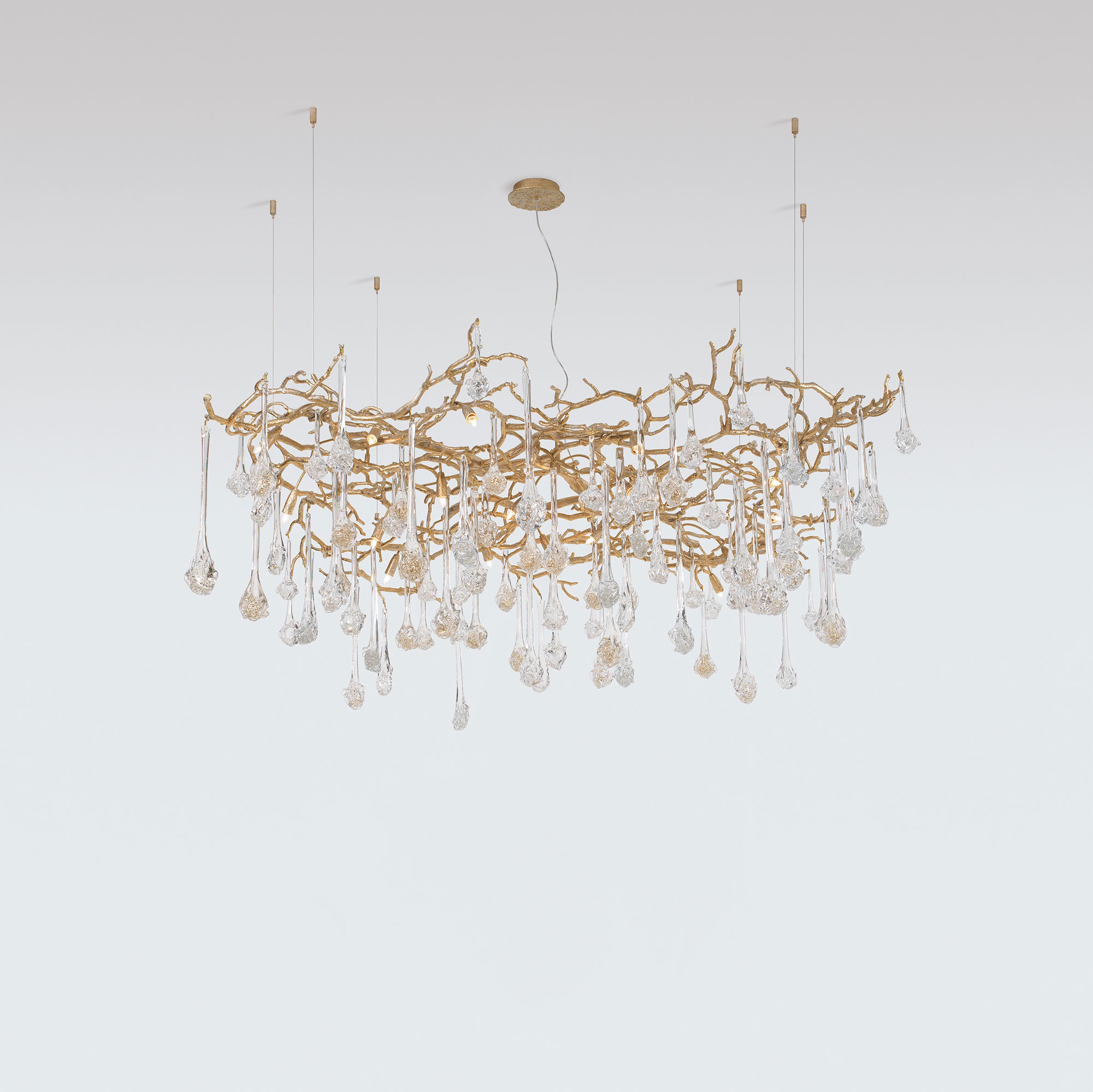 Inspired by the beauty and natural complexity of coral reef shapes, the Coral Collection stands as a dense structure of intertwined metal branches aiming for a faithful representation to its nature and visual impact.The glass pieces fall into the glimpse of marine organisms in a visual combination of great impression. Dense and robust, this collection integrates a complex system of detail aiming for a differential presence.