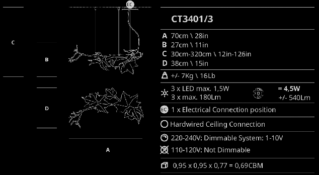 Ideal for: Vertical compositions and highlights in dining areas of classic and contemporary interiors