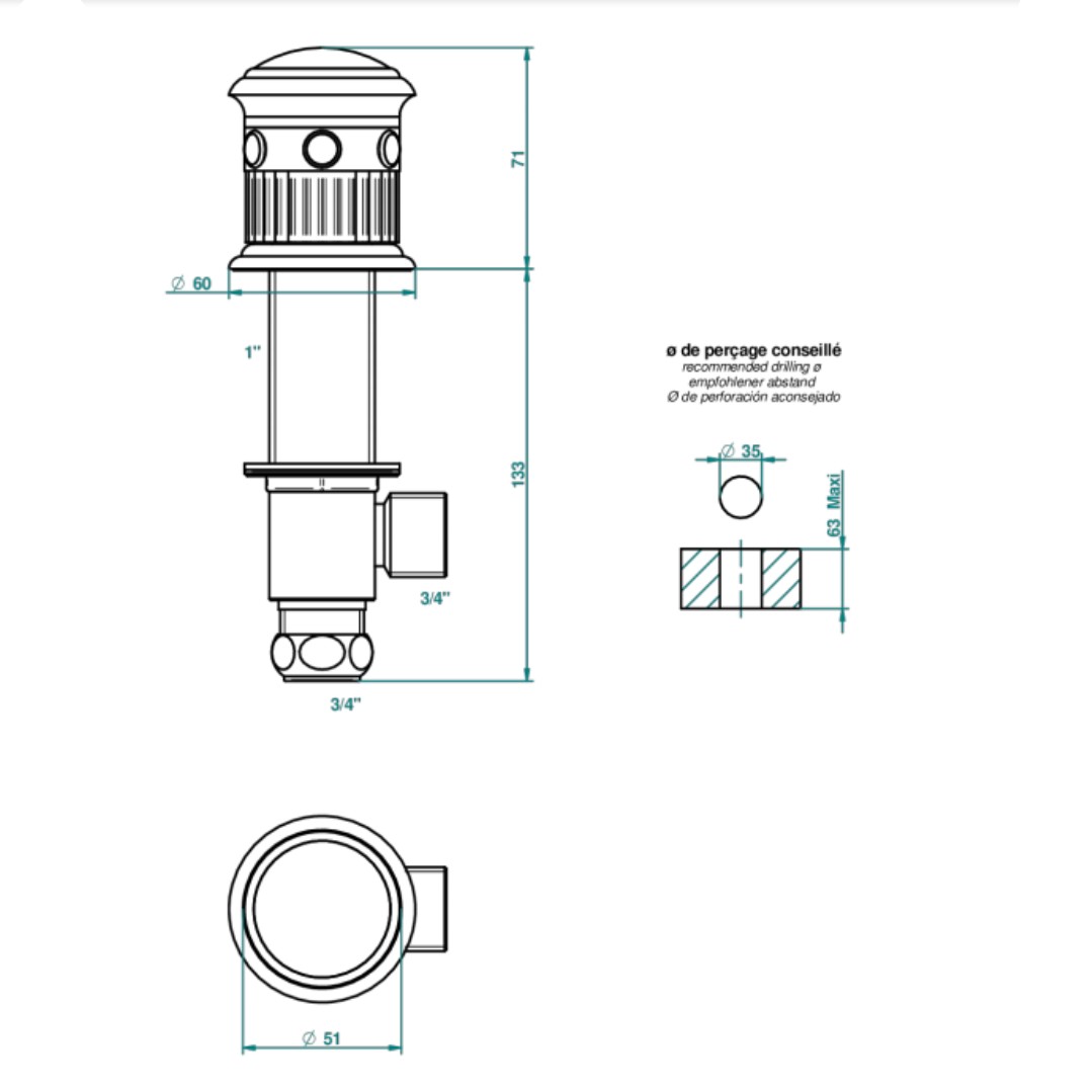 Rim mounted 3/4" valve