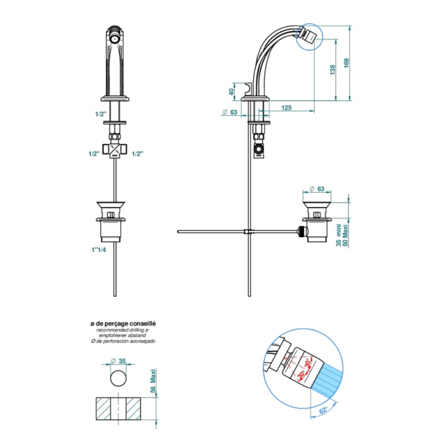 ITHAQUE GOLD DECOR坐浴盆出水嘴尺寸圖1