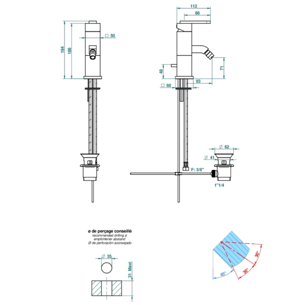 Recommandé : 3 bars (max. 5 bars) - Advised : 43,5 psi (max. 72 psi)