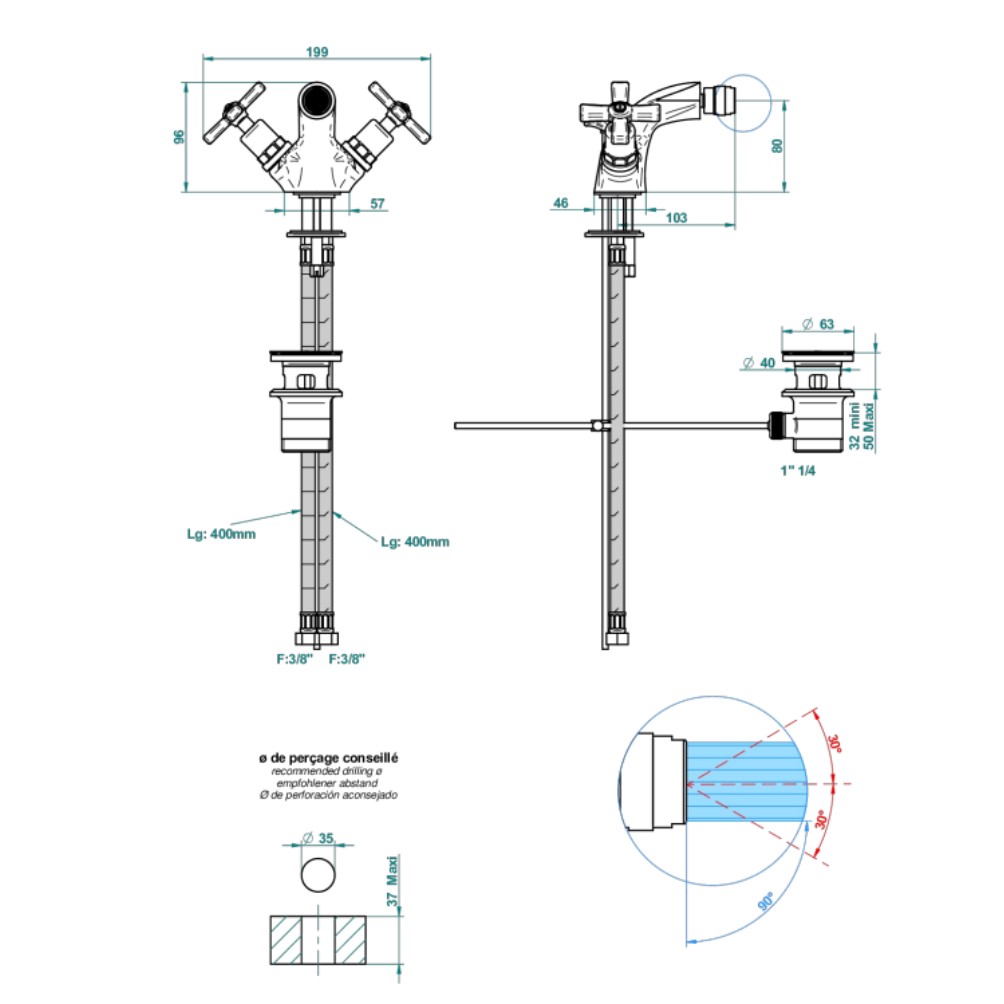 SAINT-GERMAIN坐浴盆混合器尺寸圖1