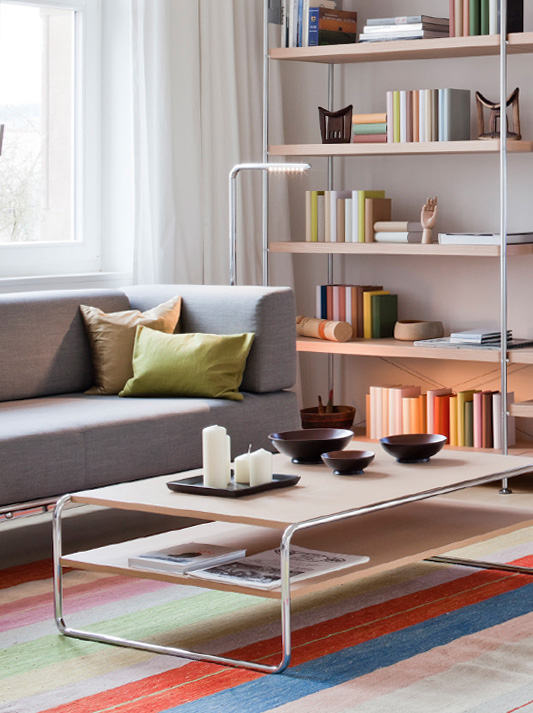 Formally reserved and well proportioned: the couch tables were inspired by the classic tubular steel furniture from the 1920s and 1930s of the Bauhaus period. With their clear lines and harmonic proportions, the tables fits in well with various environments and interior design styles. The range offers various versions and sizes, square or rectangular, and extra shelves as practical storage for all kinds of utensils.