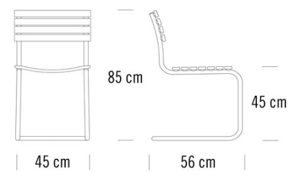 Garden chairs that match the classic S 43 by Mart Stam in their construction and design: clear and reserved in their form, with ideal sitting comfort and high quality with respect to materials and processing. Under the model name B 33 g (g = garden) these chairs were first presented in the 1935 Thonet catalog. Today, the wooden strips are made of solid Iroko, an African wood with a high density and weather resistance (FSC seal). It is similar to teak in appearance and has a smooth, even surface. All wooden parts are oiled for protection. The table S 1040 matches these chairs.
