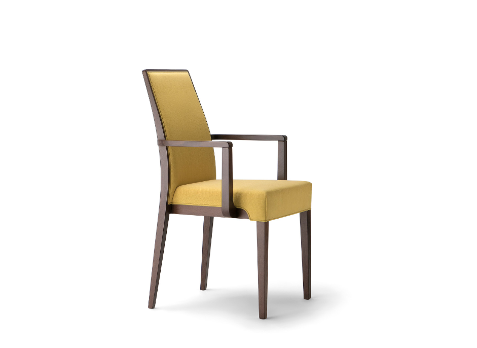 La poltrona con bracciol in legno offre un comodo sedile imbottito per