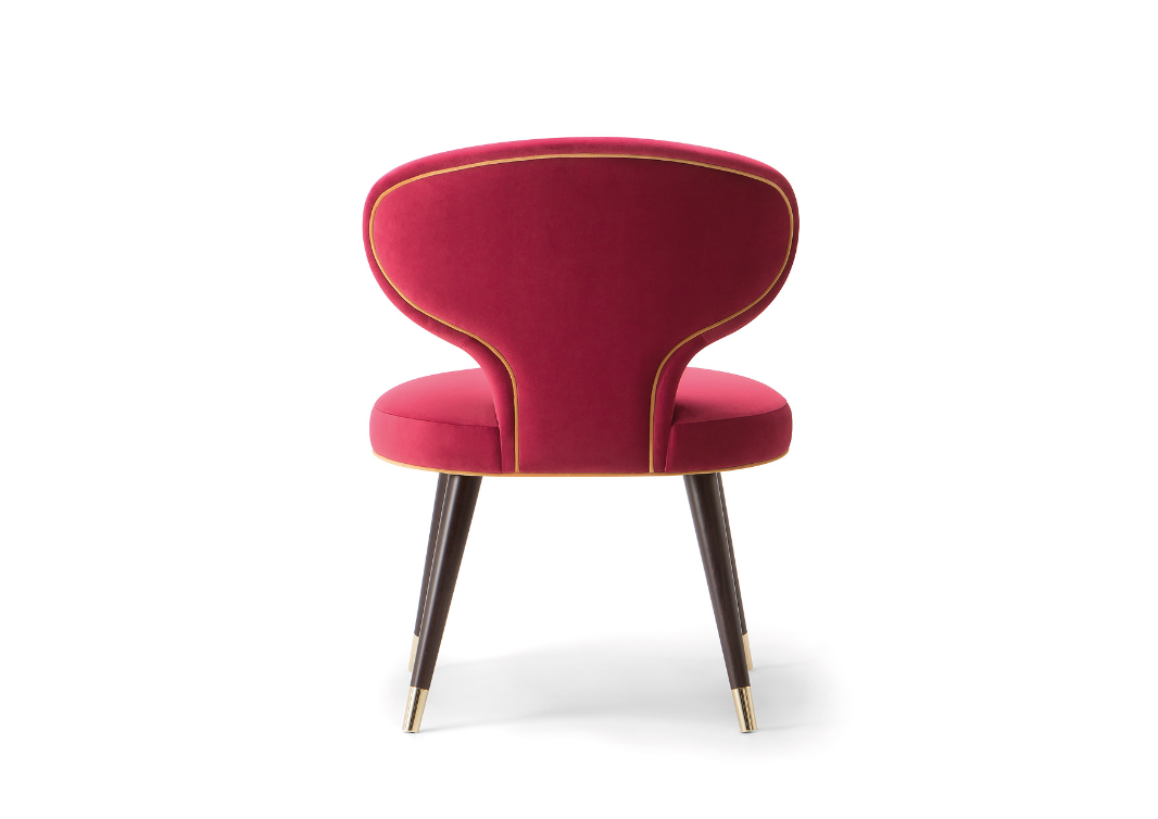 Lo schienale, simbolo distintivo di questa collezione, forma una silhouetteglamour nella poltrona Elle. Sorretto da quattro gambe coniche in legnomassello, rifinite con eleganti piedini in metallo, Elle la poltrona perfettaper appartamenti di lusso, hotel e bar alla moda.La possibilita di rifinirla scegliendo tra una vasta gamma di tessuti e tinteegno,la rende una sedia versatile e moderna.
