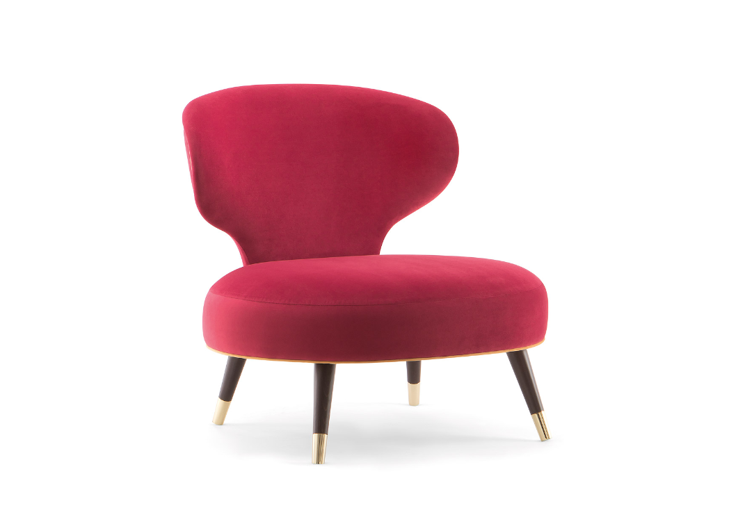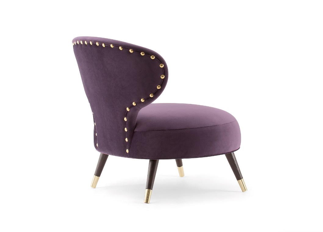 ldeale per le lounge dei boutique hotel e per i pit esclusivi cocktail bar, lapoltrona Elle crea comfort e stile.Lo schienale si curva poeticamente verso il sedile arrotondato ed arricchitoda una piacevole imbottitura. Quattro robuste gambe in legno massello,dotate di piedini in metallo, sorreggono questa elegante poltrona.
