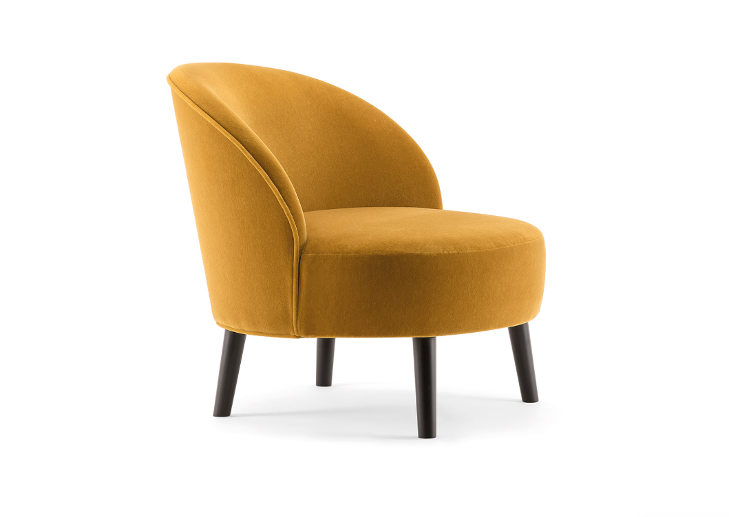 Una seduta perfettamente rotonda e uno schienale curvo si incontrano uniteda una sottile cucitura. Quattro robuste gambe coniche in legno massellosostengono elegantemente la seduta. La sedia Ginger una scelta eleganteper qualsiasi spazio, come boutique hotels e appartamenti di design.Personalizzabile sia nel rivestimento che nella tinta del legno, per adattarlaad ogni ambiente.