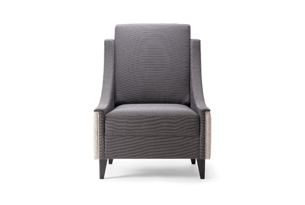 Pensata per gli spazi dedicati al relax, questa poltrona ha delle lineedecisamente personali e puo essere abbinata ad un comodo pouf.il design della poltrona Victoria prevede braccioli bassi, un schienale alamoderno ma solido  un morbido cuscino. Rivestita in una varieta di tessutidiversi per completare le gambe e il telaio in metallo, questa sedia  lidealeper salotti raffinati, lobby aziendali e camere progettate su misura per ilcliente.