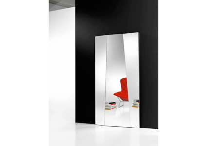 Big mirror surfaces at alternate inclination give the functionality a new aesthetic sense