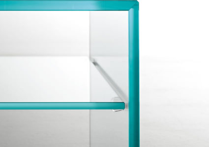 A bridge-like structure that is completed by a practical transparent or frosted glass undershelf.