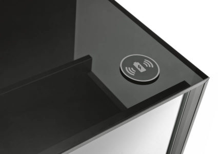 This recurring feature creates a strong complementarity between Gotham’s elements and enriches them of refined details, such as the “see, don’t see” effect of the internal black wooden drawers, equipped with soft closure and smoked mirror front. Gotham may be integrated with induction battery charger wireless.