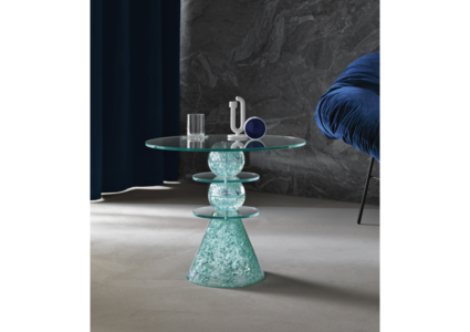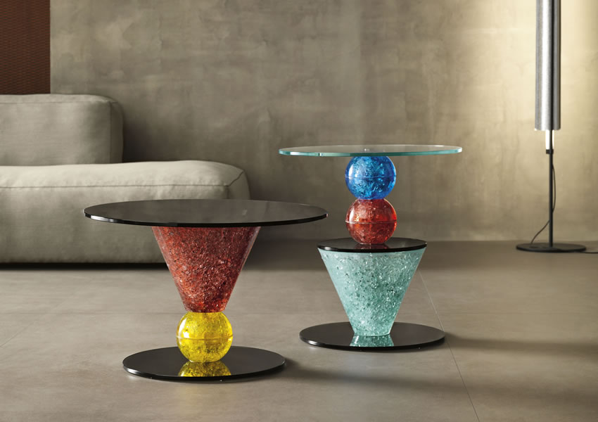 Collection of small tables defined by the new working process and the material used, a mix of glass fragments.