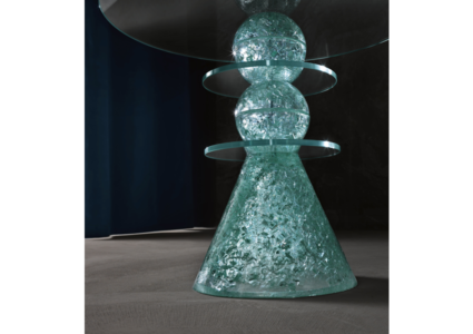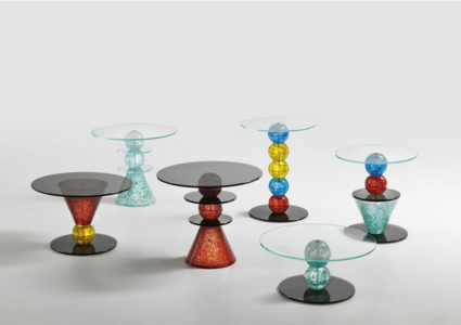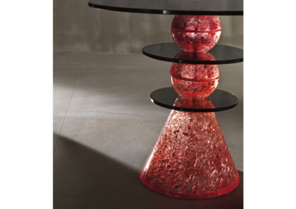 Two elements, a cone and a sphere shaped through moulds and differently juxtaposed to glass discs, give life to 6 different models also distinguished by several colours.