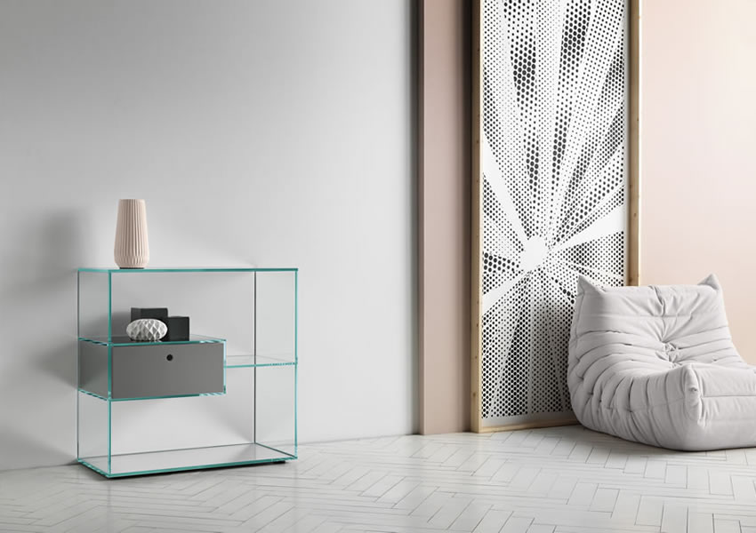 Bookcase or showcase suitable for any environment, available in different sizes. Wooden drawers mat white or RAL lacquered.
