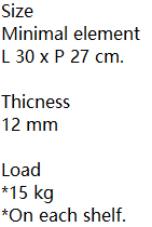 Modular shelves. The wall fixing is given by a cylindrical aluminium joint. The glass shelves are in different sizes and shapes and are available in transparent glass or extraclear glass.