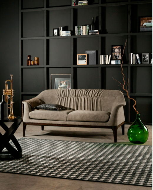 Una poltrona o un divano che si ispira ad un lusso morbido e delicato: il legno di frassino, in finitura noce Canaletto, rovere scuro, o rovere naturale, si abbina lieve al rivestimento in pelle ed eco-pelle, in tutte le colorazioni disponibili.