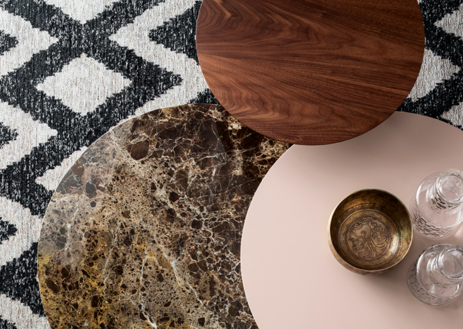 Le combinazioni di materiali e colori, offerte dai marmi e dai laccati, lo rende un punto focale perfetto della zona living.