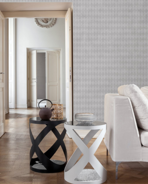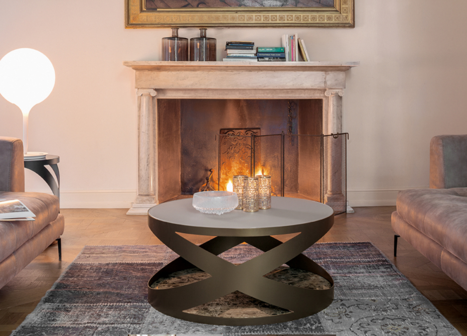 Un tavolino, o un servetto in grado di colpire e stupire tanto quanto un ampio tavolo: Rimini spicca dovunque grazie al particolare design della struttura in metallo, alla ricchezza della base in marmo italiano, ed al piano superiore in vetro verniciato e acidato. Tre diversi materiali su di un unico pezzo, da combinare in moltissime varianti: metallo bianco, nero o bronzo; marmo bianco di Carrara, nero Marquinia e bronzo Emperador; vetro fumé trasparente, acidato nero, bianco o beige.