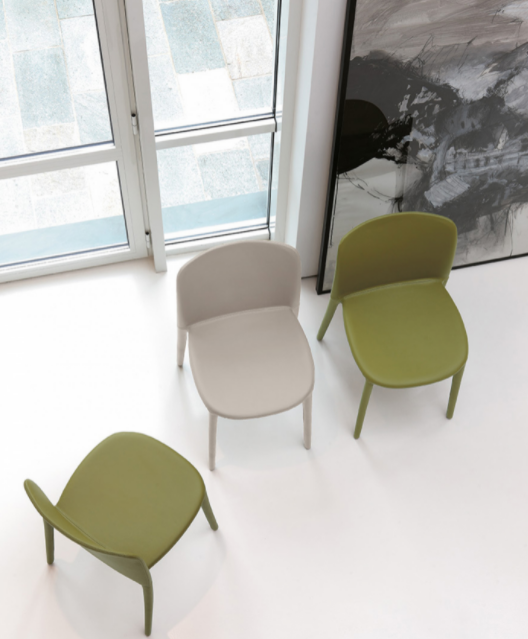 Sedia in poliuretano schiumato, materiale eccellente per la creazione di forme particolari, e di sedute estremamente confortevoli. I rivestimenti di Regina, che variano dalla pelle, all'eco-pelle, arricchiscono ulteriormente la sua bellezza.