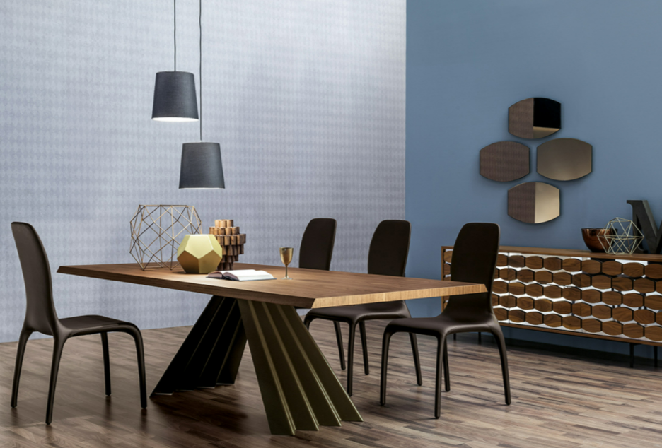 Concepito in Italia e composto di sole materie prime italiane, Ventaglio offre un connubio ideale di sapienza artigiana e qualità. La base del tavolo, e principale caratteristica di questo prodotto, è realizzata in metallo curvato e verniciato in diverse colorazioni. Il piano, allungabile o fisso, è disponibile in vetro, vetro ceramicato e legno. L’eleganza del design si rivela al suo massimo, nella versione allungabile in legno.