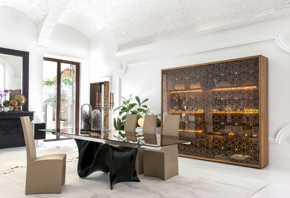 Wave è il risultato di una lunga serie di studi e pensieri su diverse tecniche di lavorazione e materiali innovativi. L'utilizzo del Baydur ha permesso che la base andasse ad imitare perfettamente la forza ed il movimento di un onda; inversamente, il piano viene sostenuto da quell'onda, placandola e ridefinendola: trasformandola da puro movimento a stasi.
