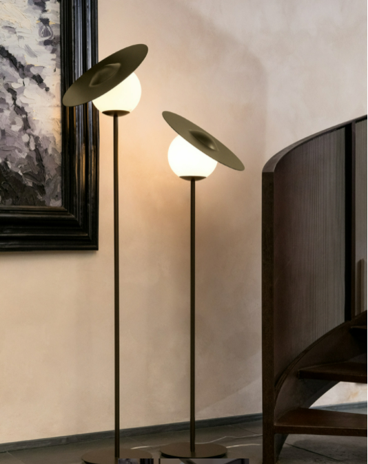 Una boule di vetro satinato che porta un elegante cappellino in metallo come le dame più eleganti di un tempo. Da questa ispirazione nasce Miss disponibile in due altezze.