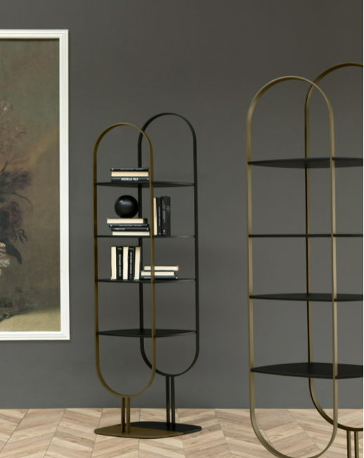 Eleganti archi bronzati e laccati neri si uniscono come lo Ying Yang per creare questa originale libreria autoportante.