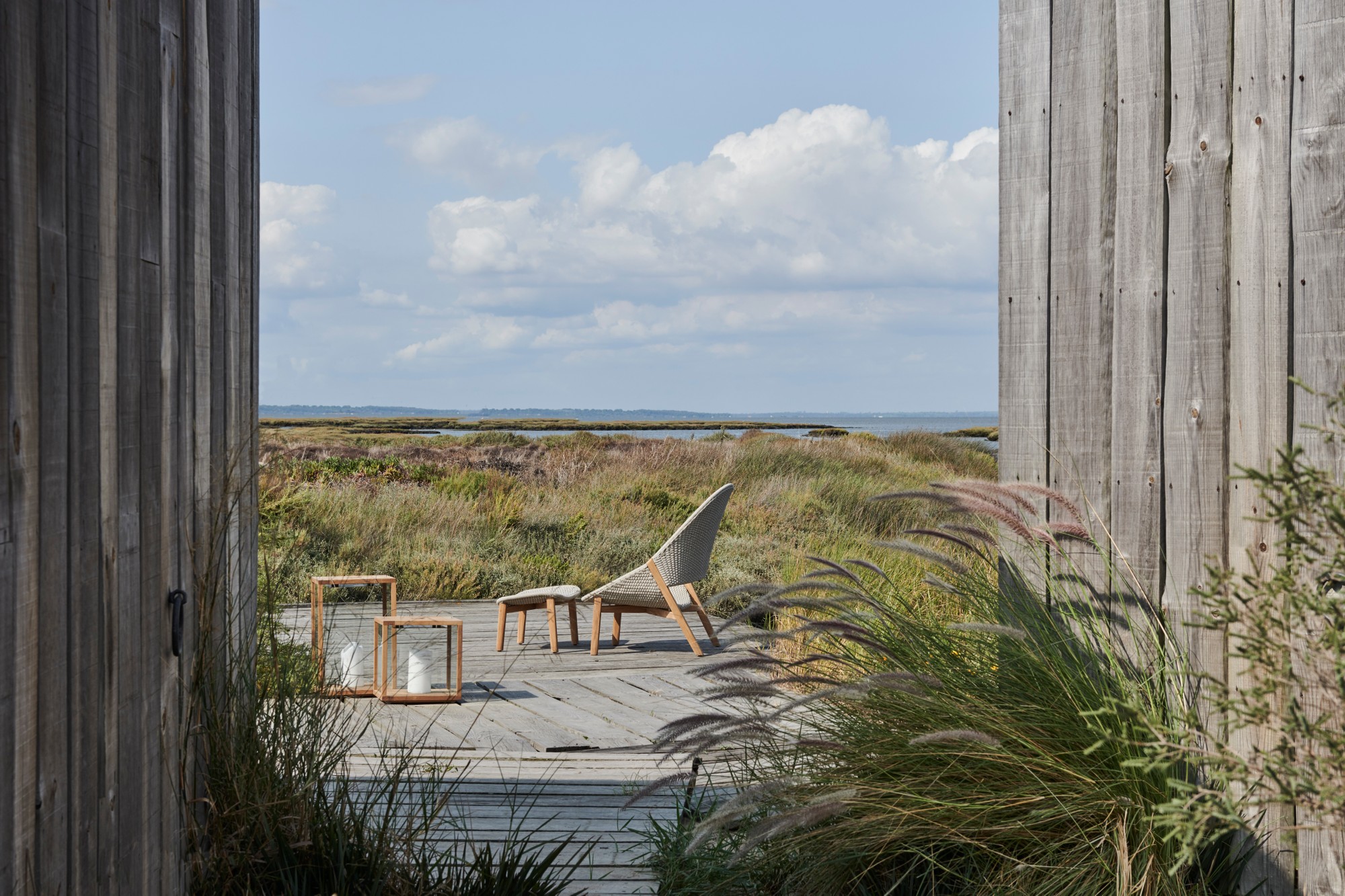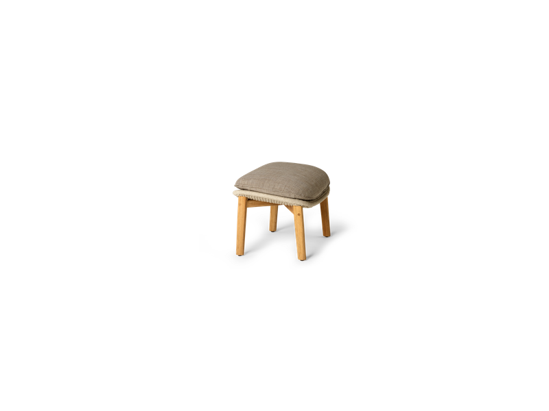 The gentle curve and tilt of the Elio footstool makes it the perfect companion to an Elio high back lounge chair, lounge chair or sofa. Covered in handwoven Tricord rope with a teak frame, the footstool adds an extra level of comfort to the Elio collection.