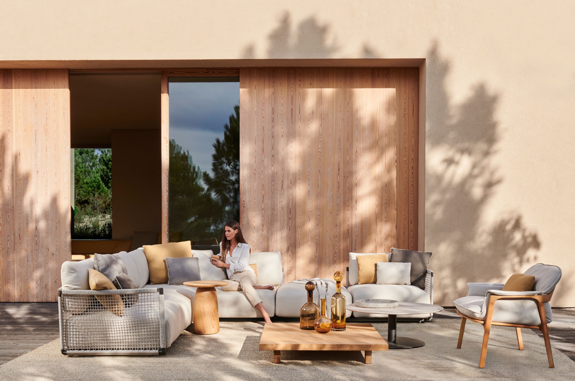 A 3D weave gives the Shindi outdoor rugs a luxurious look. Made of 100% solution-dyed PVC-coated polyester, the rugs are extremely resistant to sun, rain and mildew. Thanks to the natural colours of linen, hemp and wengé, the rugs create a warm and homely cosiness and provide the perfect finishing touch for your patio.