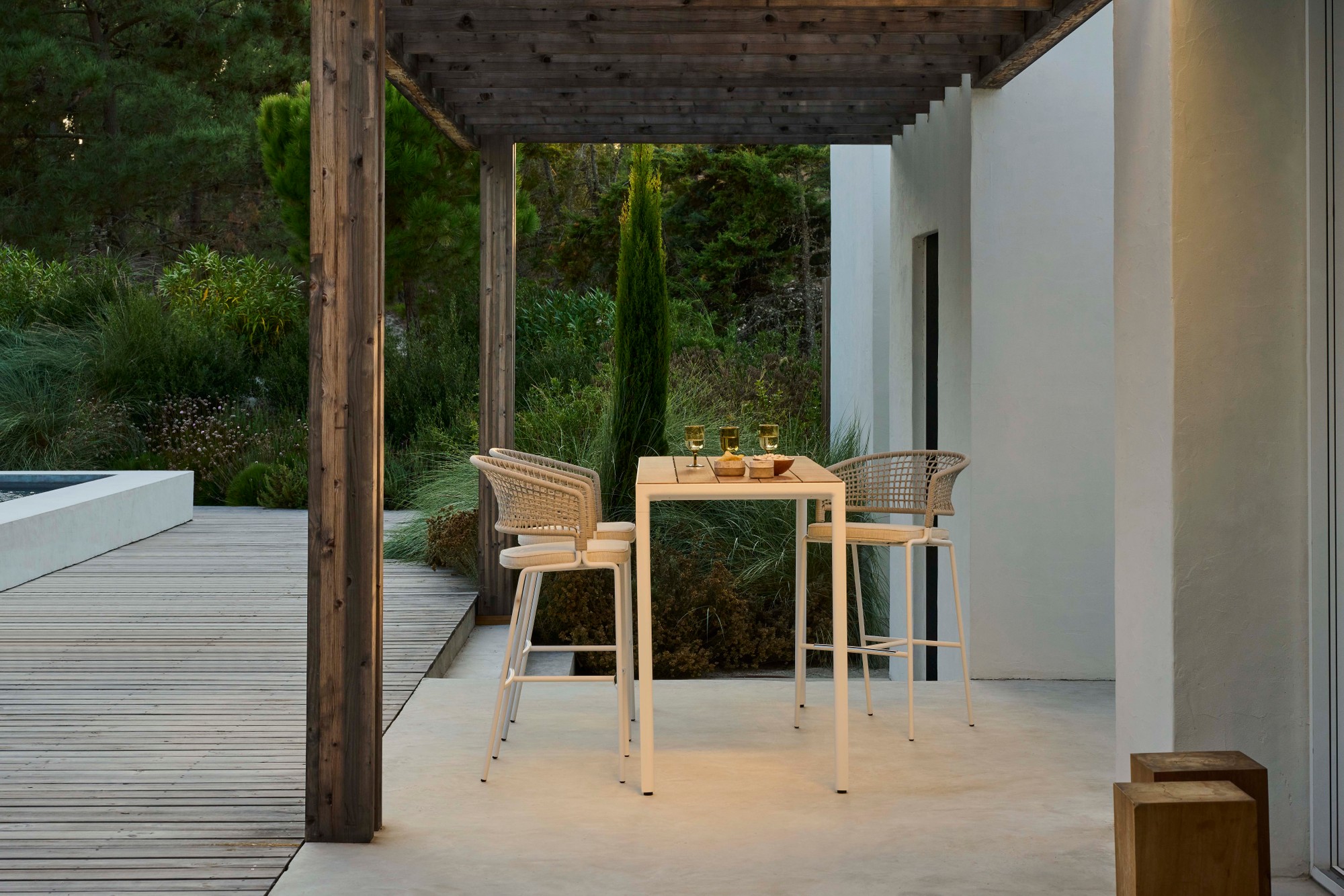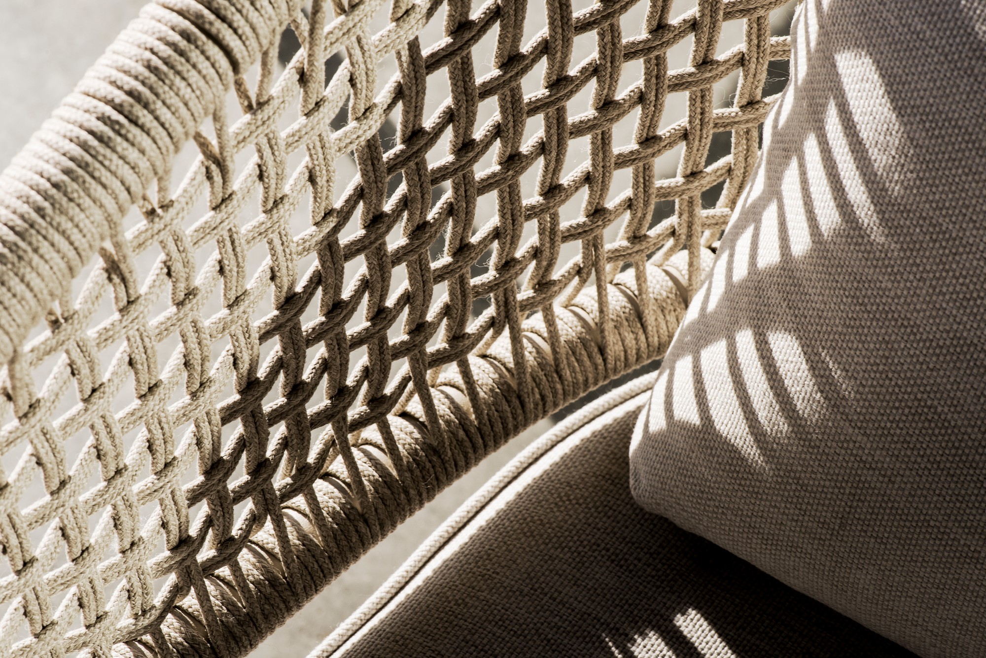 Italian designer Piergiorgio Cazzaniga does with the CTR collection what he is good at: making complex designs appear effortless. The frame of the chair is made of profiles in powdercoated stainless steel that are bent in one continuous line. The corners are straight, yet the tubes keep a round form, which requires great mastery. The backrest is attached to the frame at only 2 points and appears to float unsuspended above the seat. The open weave refers to the ancient tradition of weaving and gives flexible support to the back. The seat is upholstered with a water-repellent cushion which can be easily removed.