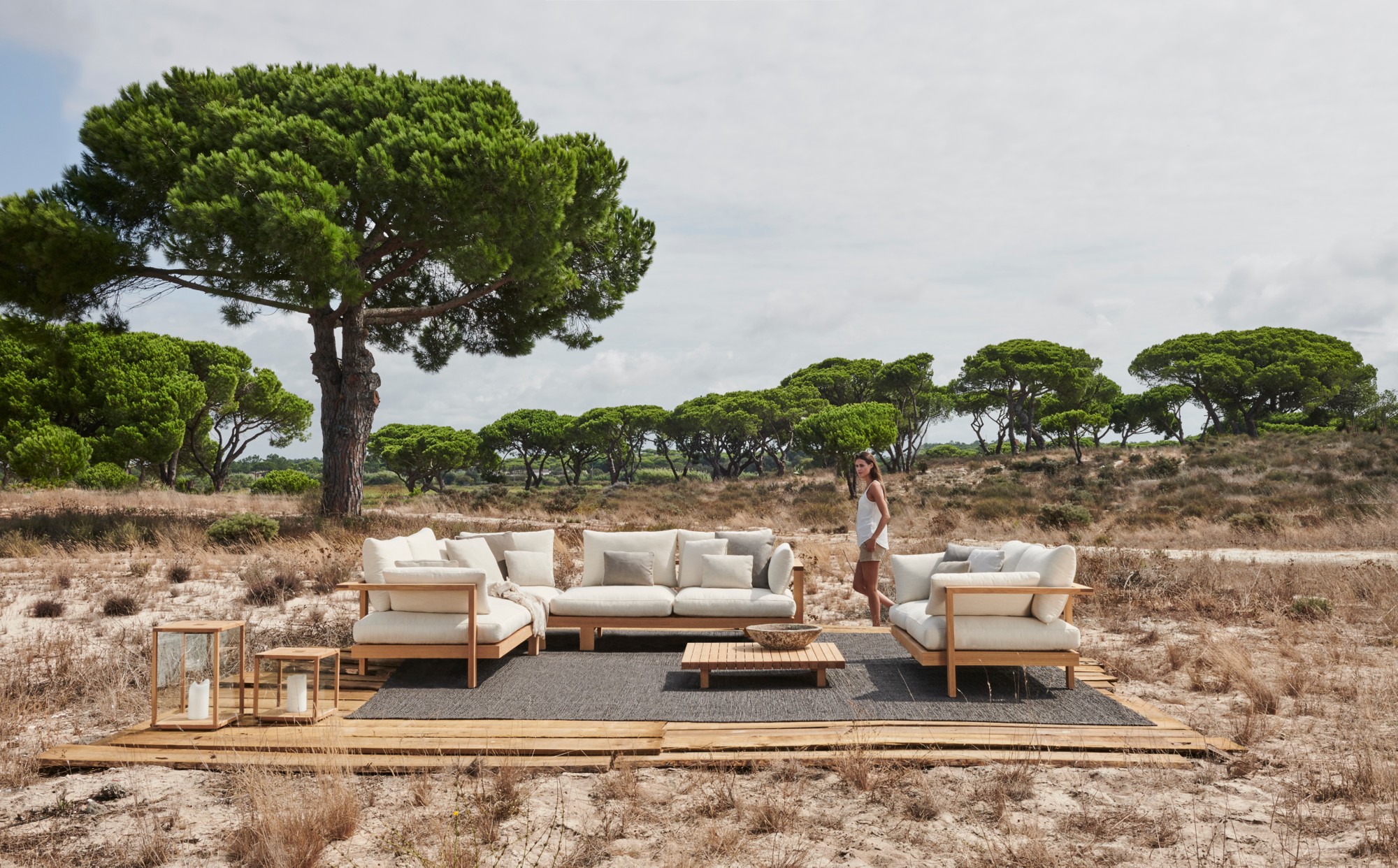Pure Miami meridienne pairs tailored cushions with Pure’s signature open teak frame. The frame, made of the highest quality plantation teak, contains and supports the angled backrest cushions while keeping a light and open look. The meridienne also comes with an optional side cushion for added comfort. You can further personalise the Pure Miami meridienne, choosing from more than 100 nature-inspired outdoor fabrics.
