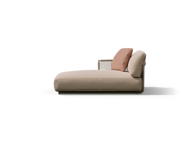 The Nodi meridienne has a bold personality, but is a subtle presence in an outdoor room setting. Nodi's trademark twisted, weather-resistant Canax? weaving is stretched over a solid frame to cradle deep cushions. These are filled with extra-soft weather-resistant outdoor filling for complete comfort. The marine-grade stainless steel frame gives solidity, but appears light off the ground.