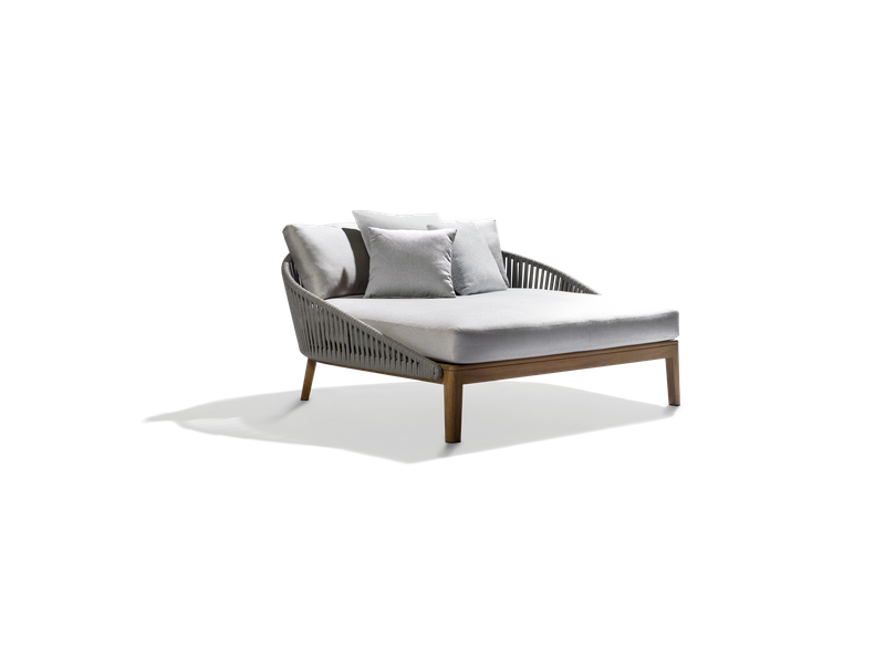The airy design of the Mood collection and its warm combination of teak and handwoven backs will immediately create an intimate atmosphere on your patio. The rounded design of the durable teak gives the lounge bed a warm and friendly tone. The weave in Tricord has a very soft touch, but can nevertheless defy all weather conditions. Tribù has developed a range of natural colours that fit in with any type of outdoor environment. The comfortable outdoor cushions can be left out in the rain, thanks to the ventilating, water-repellent filling.