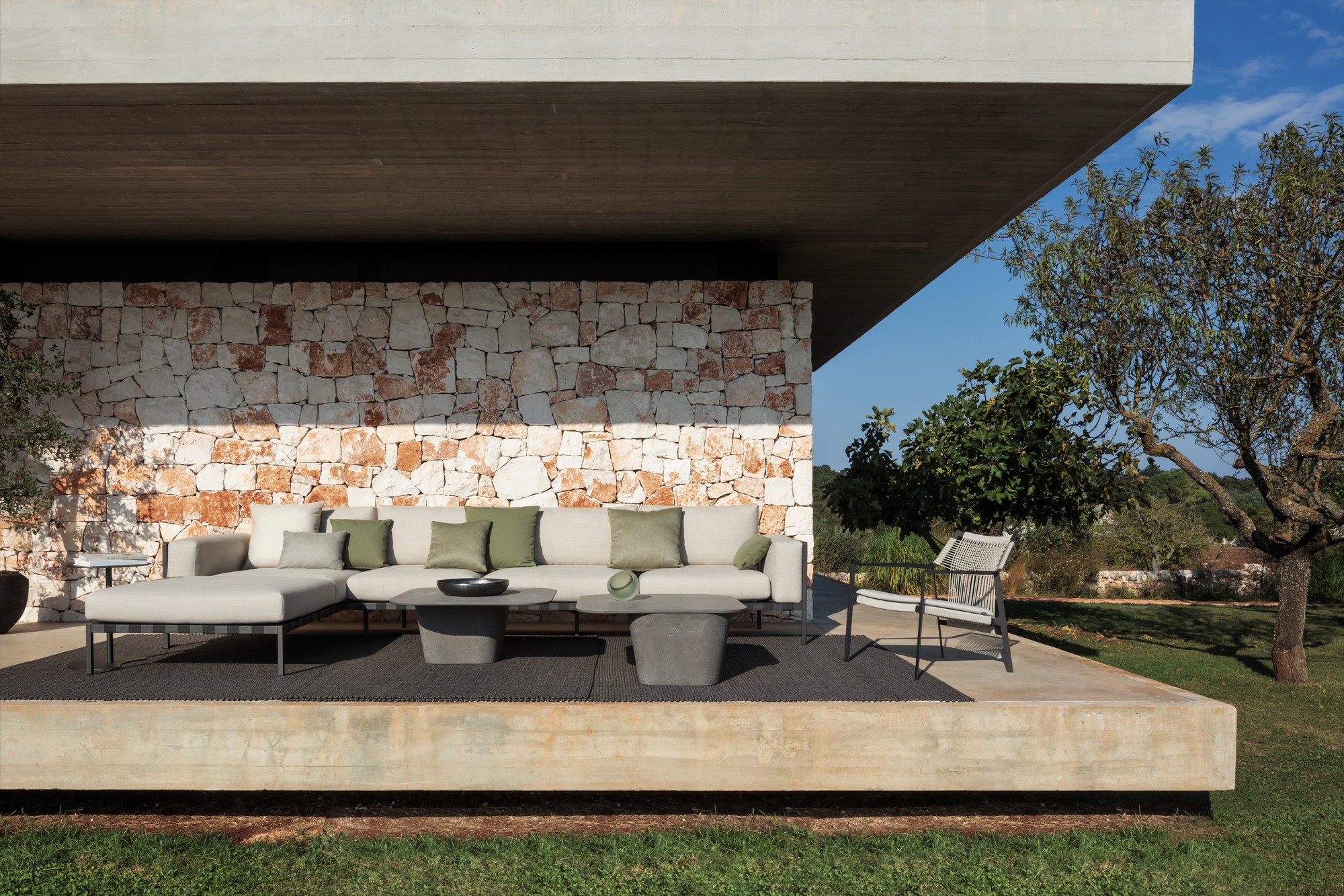 The elegant Tao table collection is a lesson in perfectly balanced contrasts – bold sculptural pedestals are combined with slim table tops that are pleasing to the touch. Designer Monica Armani has used refined lightened concrete, finished by hand to create a look of elegant solidity. The coffee table plays tricks with symmetry by setting the finely milled square table top off centre.