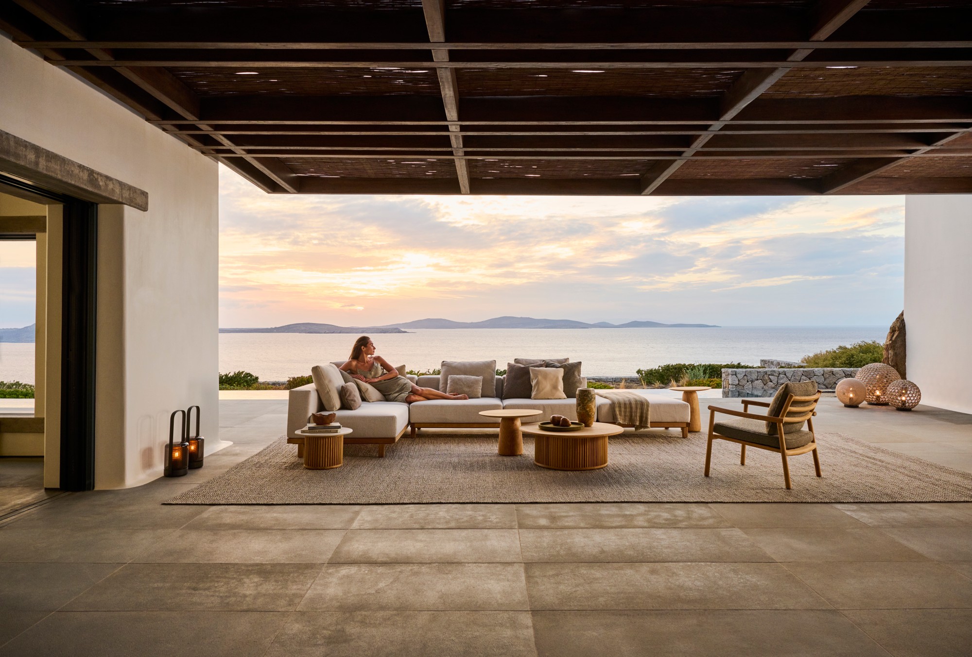 Otto was inspired by a rhythmic ‘ribbon’ pattern, often found in Italian bar counters from the ’40s. The collection also references ancient architectural pillars with their typical fluted pattern. Using merely one simple element, an endless yet interesting surface can be created, not only significantly reducing the waste of precious teak wood, but creating a durable timeless design that accommodates many outdoor purposes.