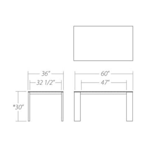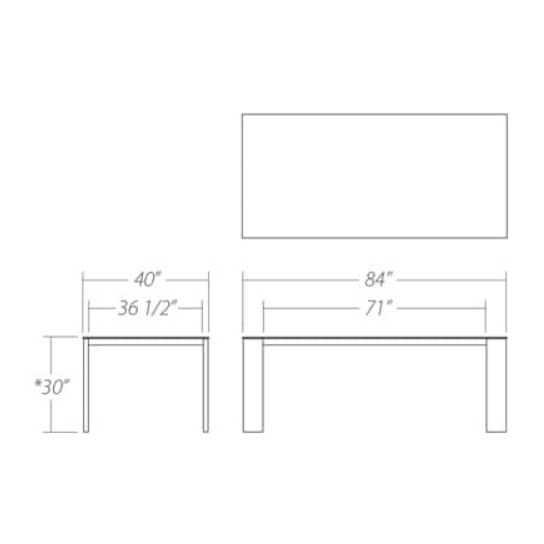 Solid wood legs: 1 1/2” x 6 1/4”.