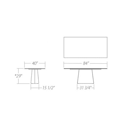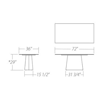 Starphire tempered glass top with a flat polished edge (12 mm/ 1/2” thick).