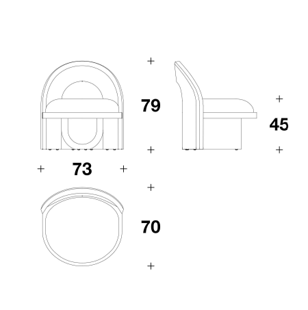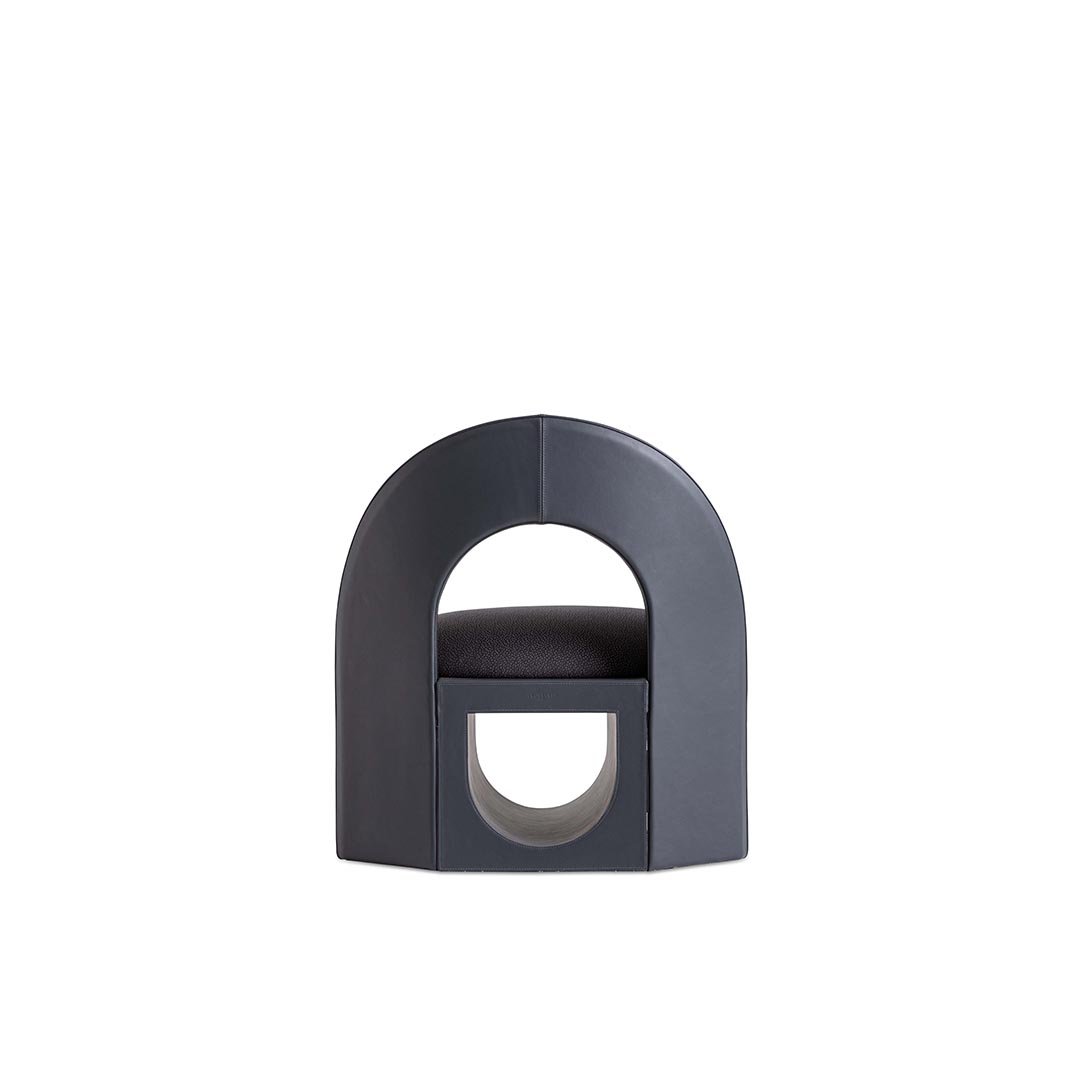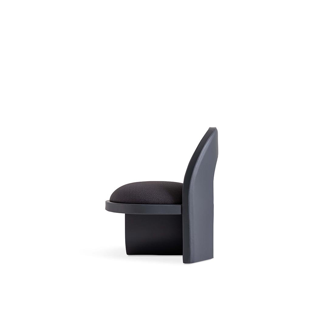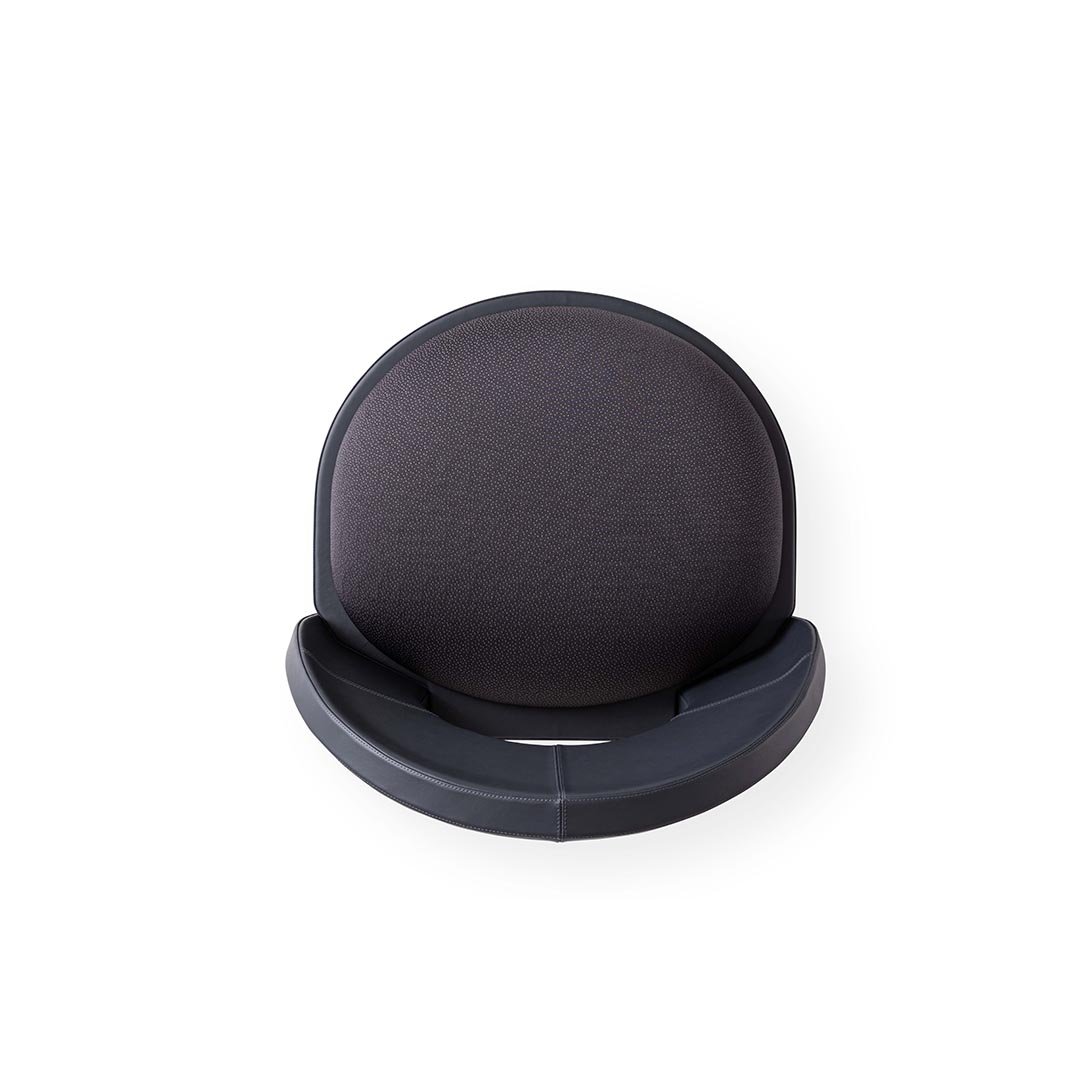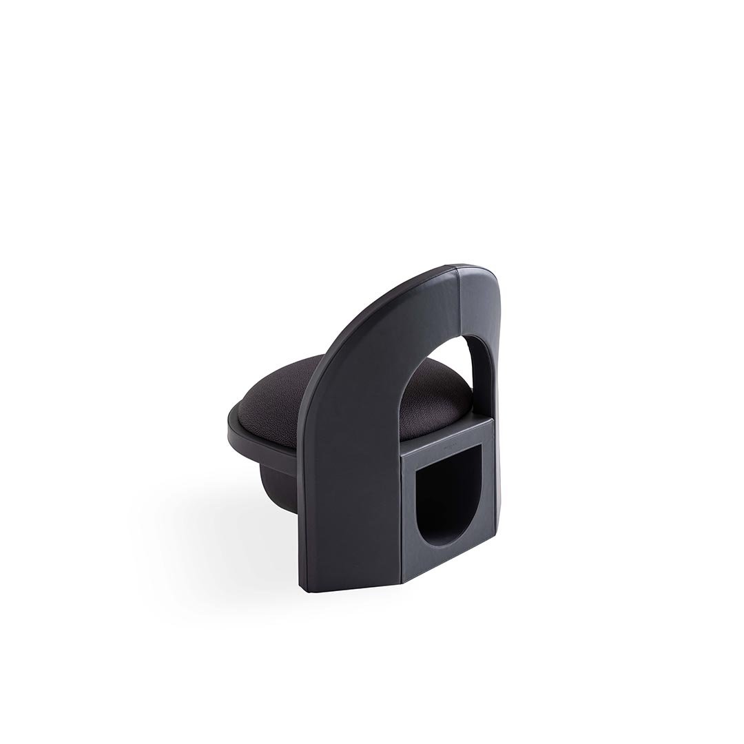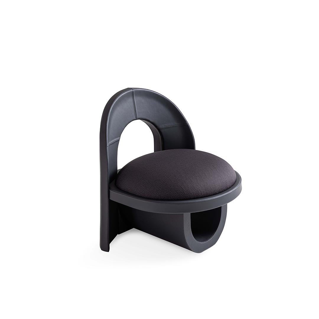 Sunset armchair combines a top arch and bottom arch together—two semicircles mirroring each other like the sun and its reflection, while the seat represents the horizon. Its round and comfortable design can also be appreciated in the shape of the ergonomic backrest, while the frame is entirely covered in leather.