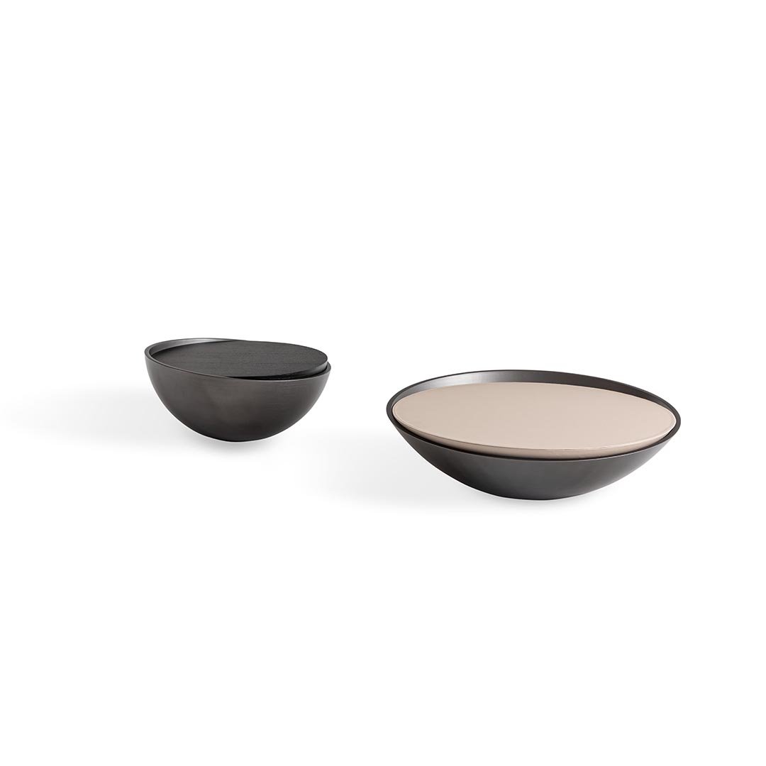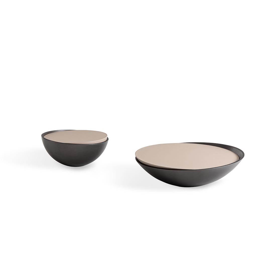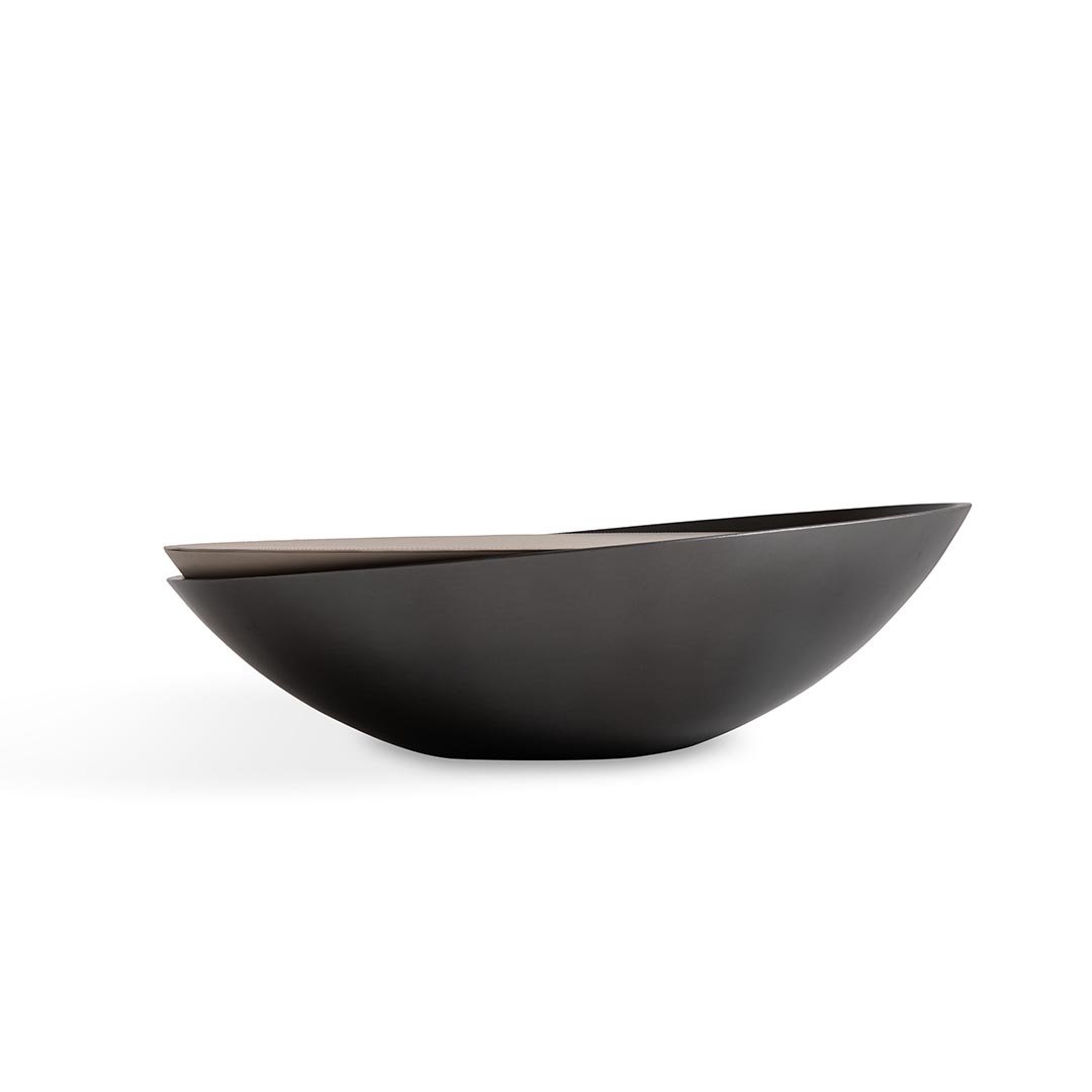 In Bowl coffee table, the base disappears and the top dominates the surrounding space with its sculptural frame—thanks to a fine balance between movement and inertia that pays tribute to Japanese minimalism. Two half spheres meet and fuse into Bowl. A distinctive contour emerges from the fluid movement of their intersection, bringing art and design together to perform a function.