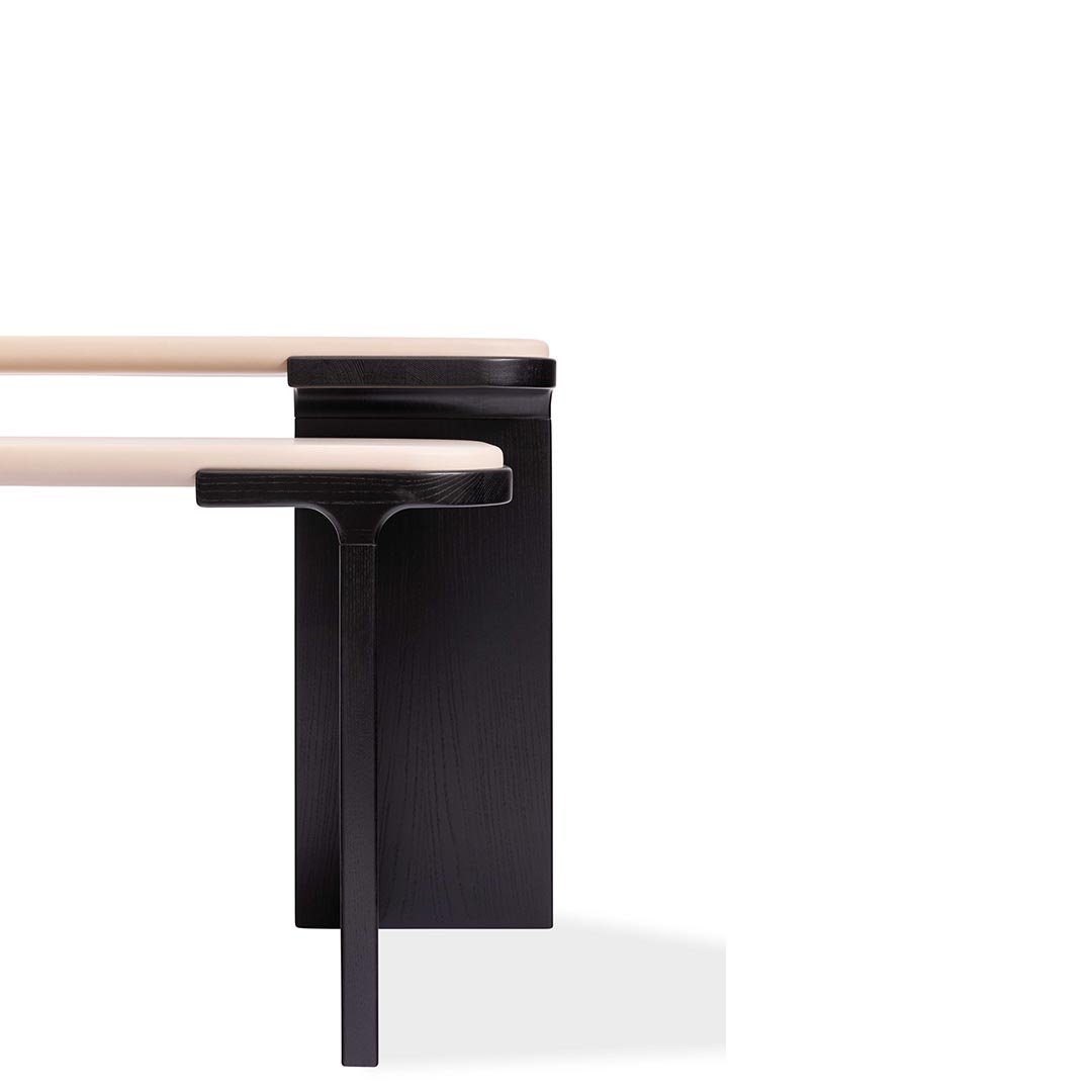 separate elements: a central top fitted with double T shaped legs that are moulded around