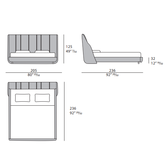 The bed of the collection Blues is soft and cozy, fully padded and a pure symbol of comfort and well-being. The upholstery materials, leather and fabric, create an elegant contrasts. The Blues bed is available in different finishes as per sample books.