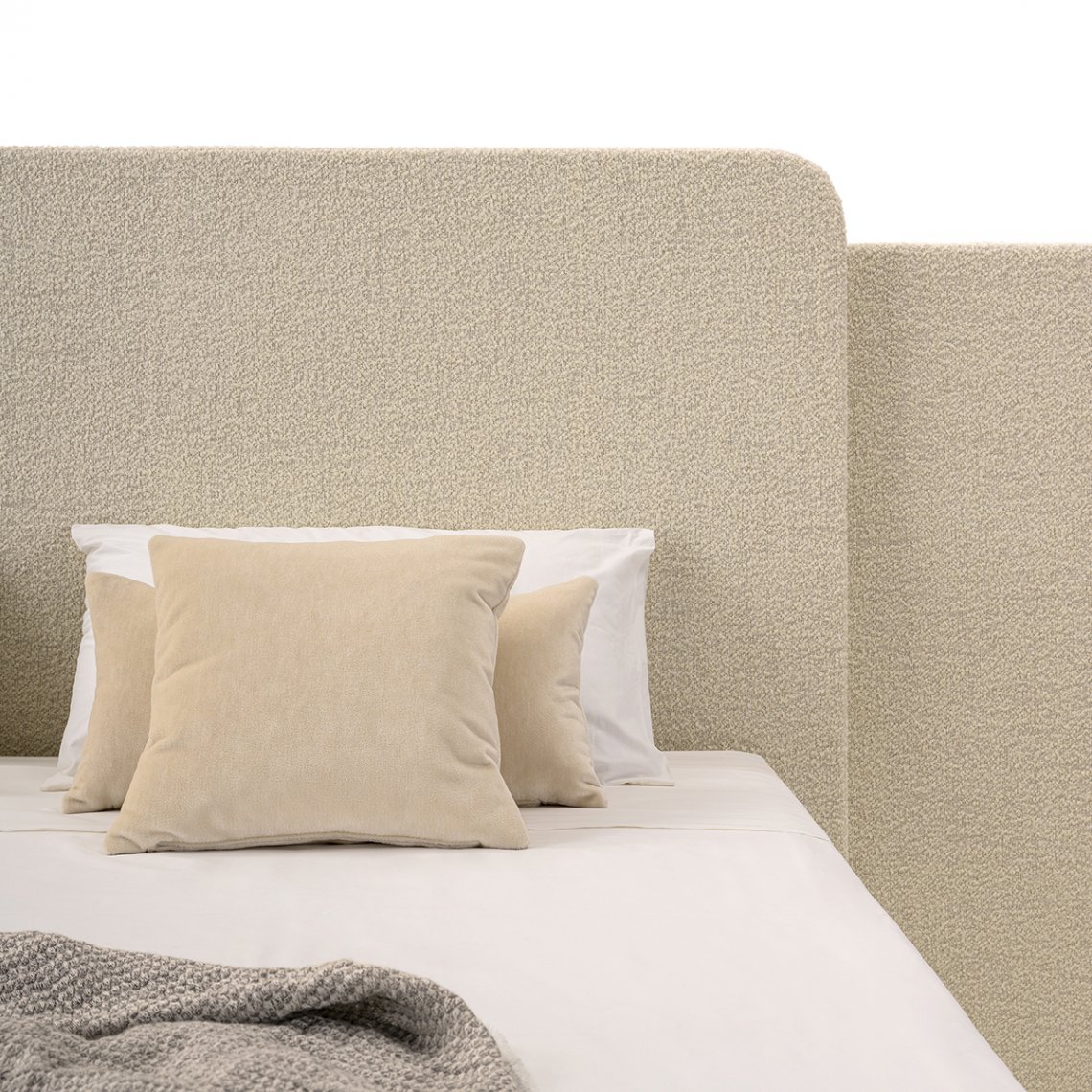 In the bedroom area of the Roma collection, the bed plays a fundamental role, made with a wing structure, completely covered in fabric or leather, both in the headboard and in the bed frame. The side wings can be made with embroidery, in the characteristic texture of the collection. The Roma bed is available in different finishes as per sample card.