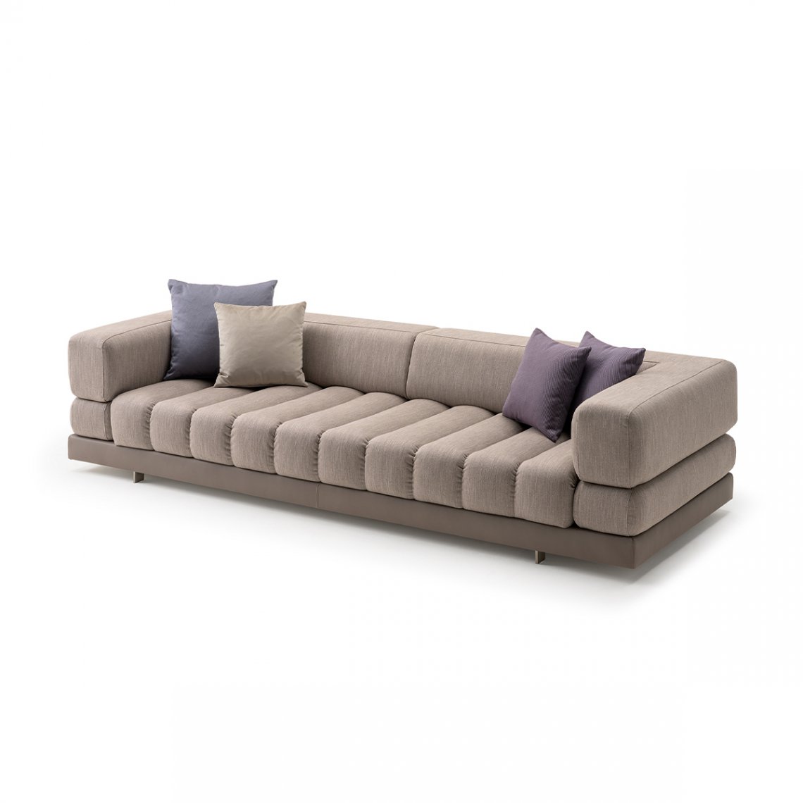 The sofa of the Domus collection is fully padded and made up of “tops” that design the seat and back. Available in four different versions: armchair, 2-seater, 3-seater, 4-seater. It can be covered entirely in fabric, all in leather or by differentiating the section of the base. The Domus sofa is available in different finishes as per sample card.