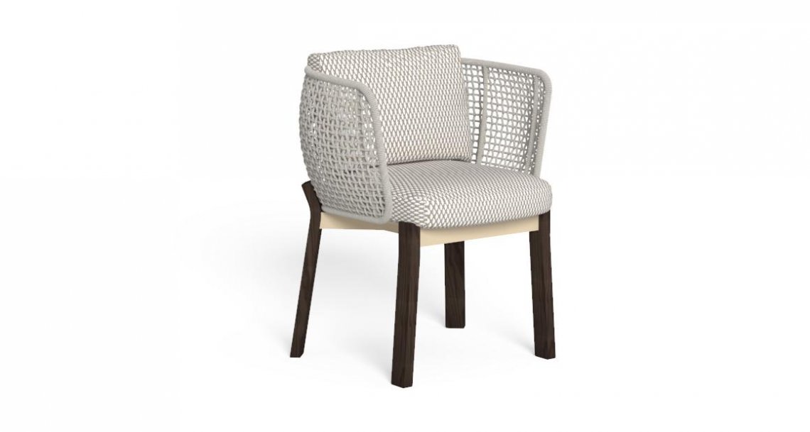 L’avvolgente volume intrecciato della Poltrona da Pranzo abbraccia la cuscinatura accogliente ed abbondante, creando un gioco di forme e di consistenze che completa e rifinisce il gusto della collezione Argo. L’impiego delle corde sintetiche intrecciate per la struttura dello schienale e per i braccioli, l’imbottito sfoderabile e realizzato in quick dry foam rendono la Poltrona da Pranzo pratica e resistente agli agenti atmosferici. Il pregio dell’intreccio, associato alla texture ricercata dei tessuti fanno di questa seggiola l’elemento perfetto per impreziosire qualsiasi spazio outdoor.