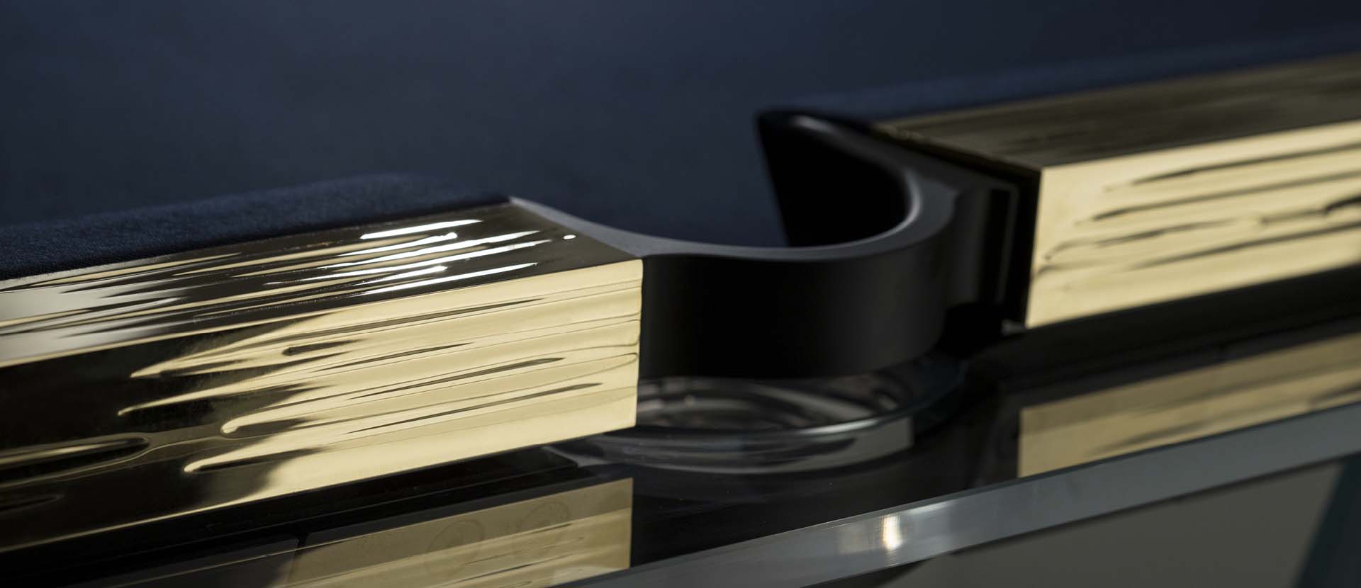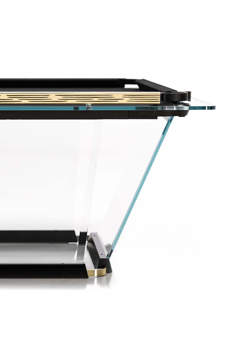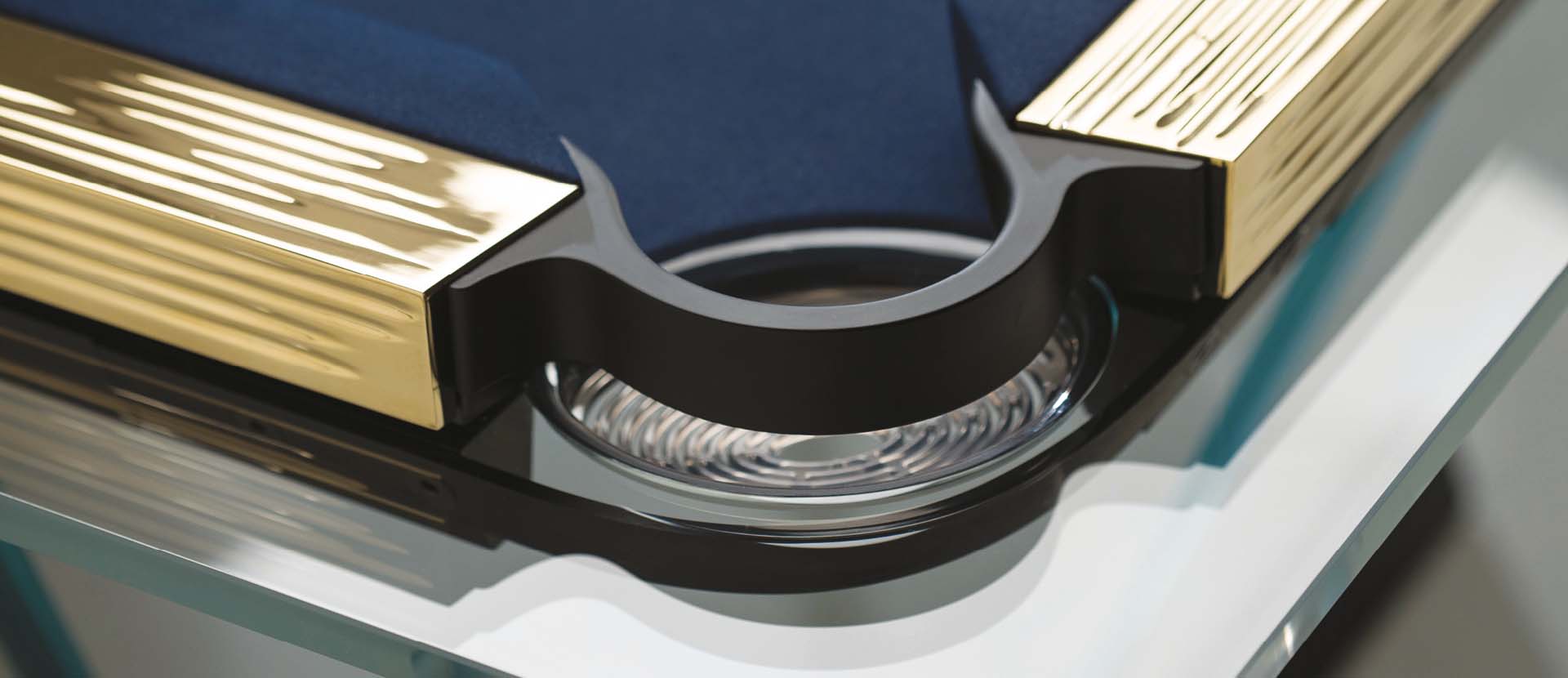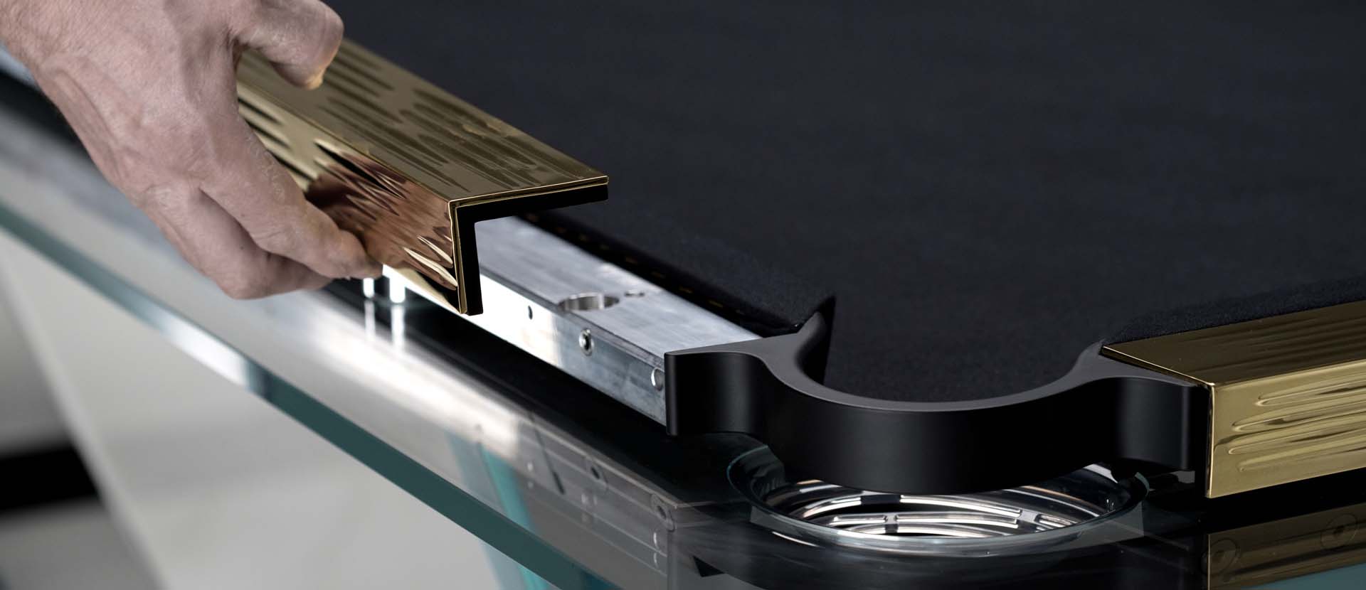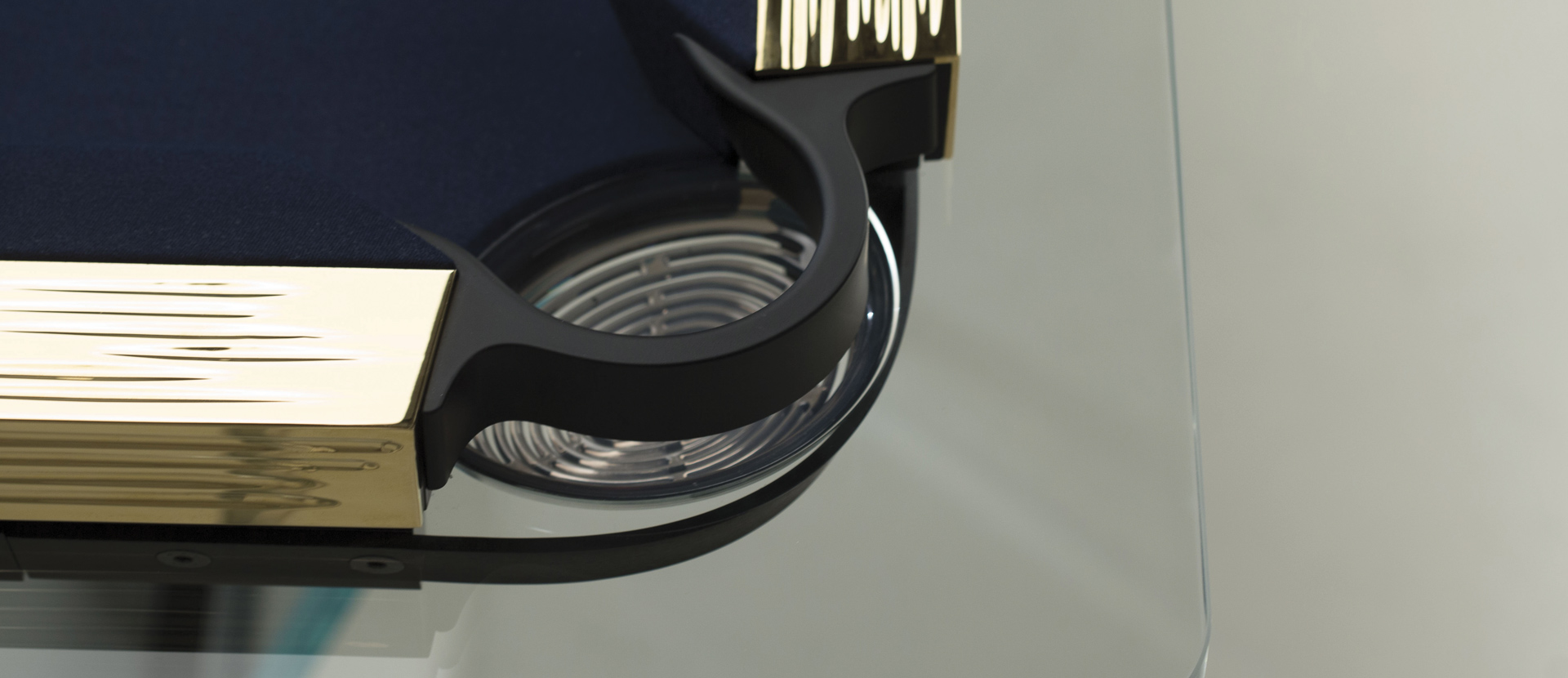 A pool table that has no rivals. Versatile and eclectic, the T1.2 is impressive, from its original system of interchangeable, magnetized side walls to the sophisticated, hand-stitched leather and rainbow of pool table cloths to choose from.