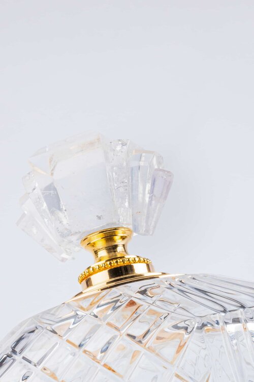 The diamond’s brightness of the french cut crystal exalts the deep color and grain of the stone. A jewel detail that embellishes this casket box in a perfectly Art Decò style and yet with a contemporary design. Each crystal is hand-cut and therefore unique.