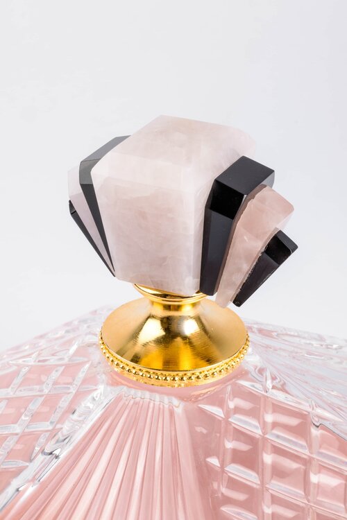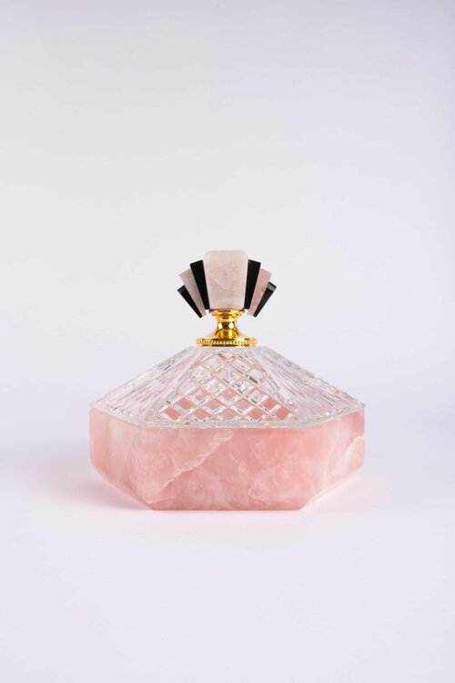 The delicate shade of pink quartz is exalted by the contrast of the black obsidian. A jewel detail that embellishes this hexagonal shaped casket box in a perfectly Art Decò style and yet with a contemporary design. Each piece is hand-cut and therefore unique. Available in three sizes.