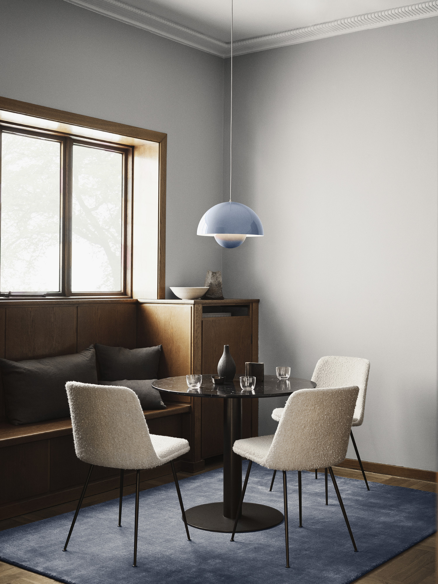 Sitting within the wider In Between collection, this elegant dining table is now available with a luxe marble top. Choose between Nero Marquina or Bianco Carrara marble in either black or white for a sleek statement piece. The rounded base comes in matte black or a bronzed metal.